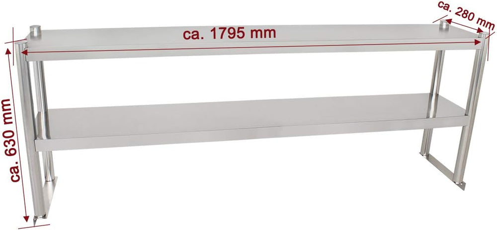 Beeketal 'BTA-180' Küchen Arbeitstisch Aufsatzboard 180 cm aus Edelstahl mit 2 Ablageflächern (Tragk