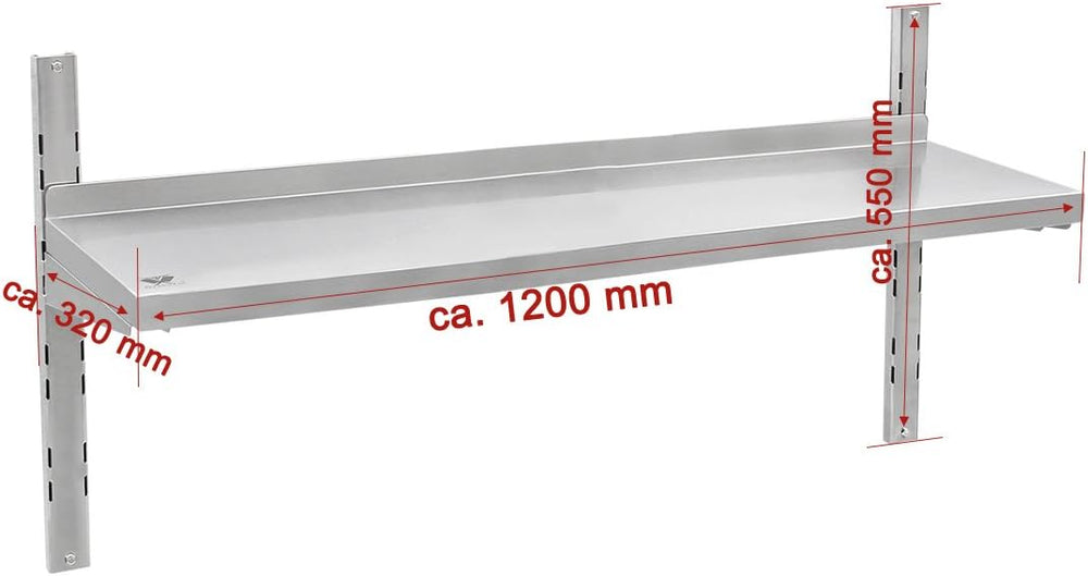 Beeketal 'BWR-2' Gastro Edelstahl Küchen Wandregal 1200 mm Länge x 320 mm Tiefe, 1 Ablagefläche mit