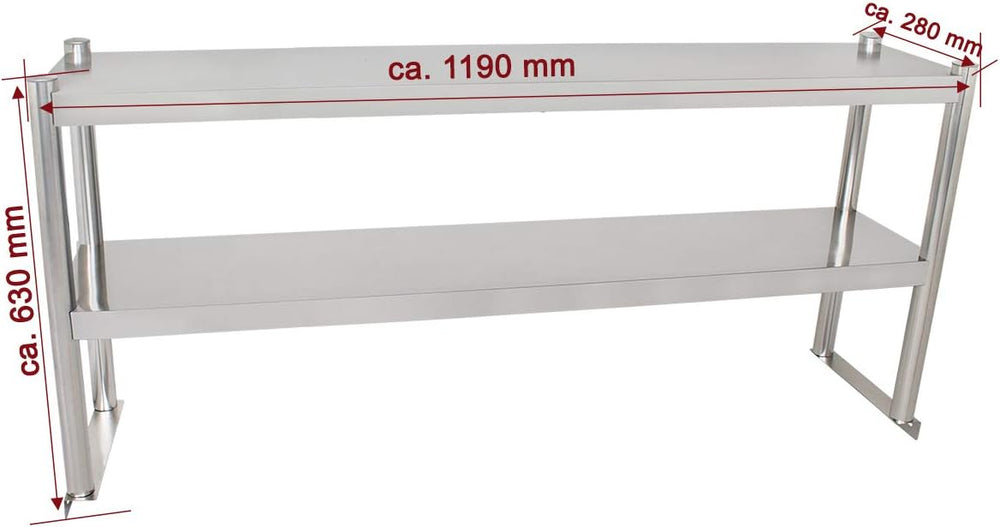Beeketal 'BTA-120' Küchen Arbeitstisch Aufsatzboard 120 cm aus Edelstahl mit 2 Ablageflächern (Tragk