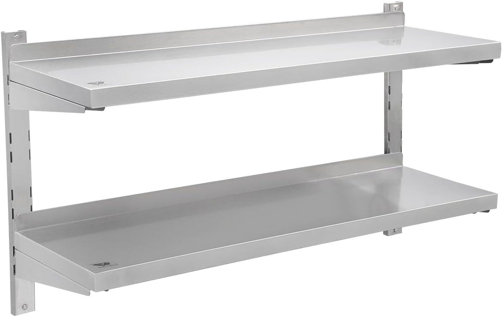 Beeketal 'BWR-5' Gastro Edelstahl Küchen Wandregal 1000 mm Länge x 320 mm Tiefe, 2 Ablageflächen mit