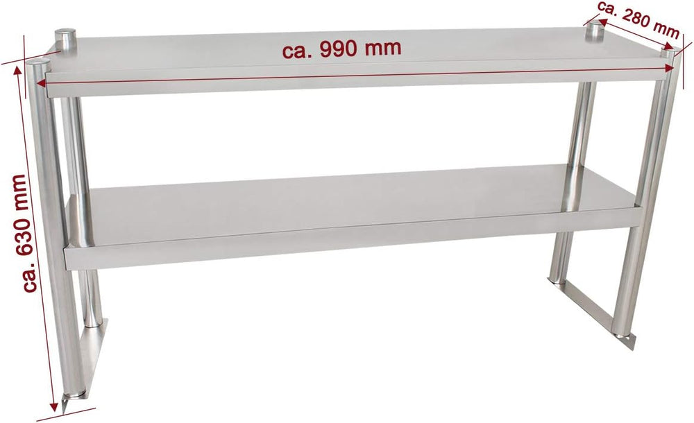 Beeketal 'BTA-100' Küchen Arbeitstisch Aufsatzboard 100 cm aus Edelstahl mit 2 Ablageflächern (Tragk