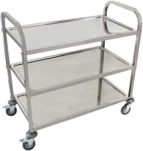 Beeketal 'BSW-3a' Edelstahl Servierwagen Transportwagen mit 3 Böden und Kantrohrgestell (belastbar b