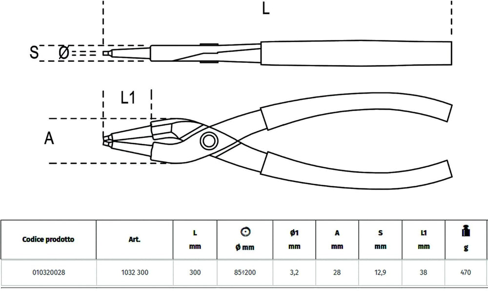 Beta 1032 180 - Zangen mit geraden Backen, für Sicherungsringe mit Innenspannung, Griffe mit PVC-Übe