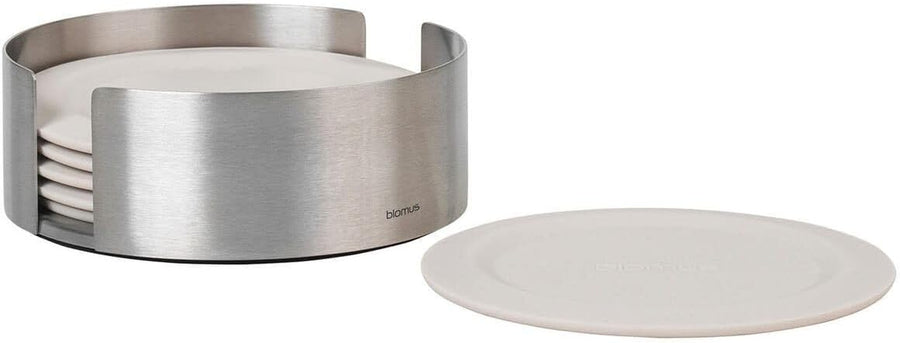 blomus -LARETO- Set aus 6 Silikon-Untersetzern, sanfter Beigeton, inkl. Edelstahlhalter, Farbe Moonb