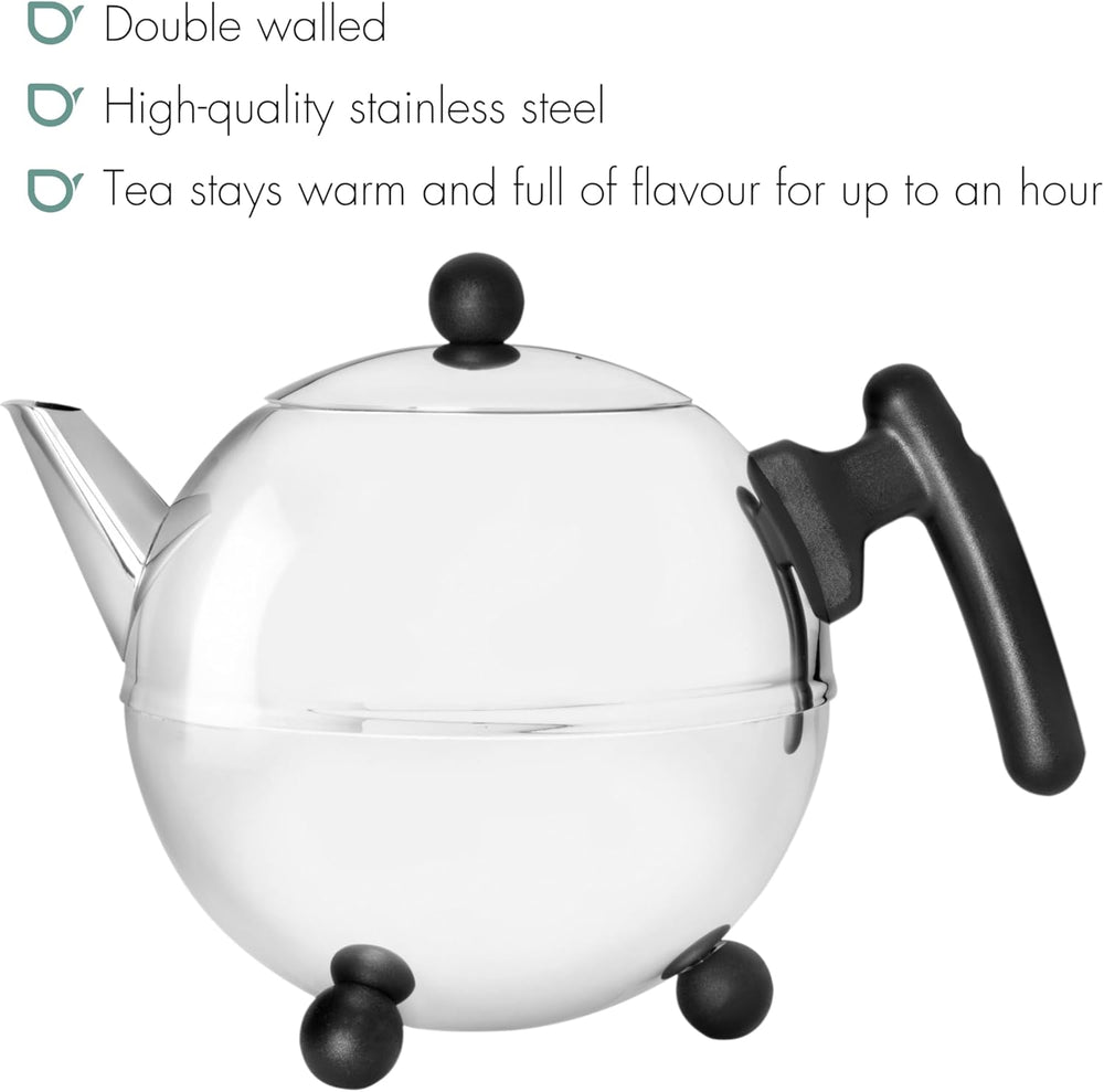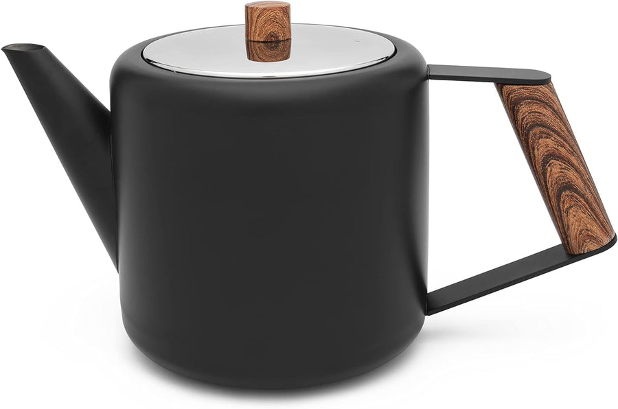 Bredemeijer Schwarze doppelwandige Edelstahl Teekanne 1.1. L & Holzgriff 1.1 Schwarz, 1.1 Schwarz