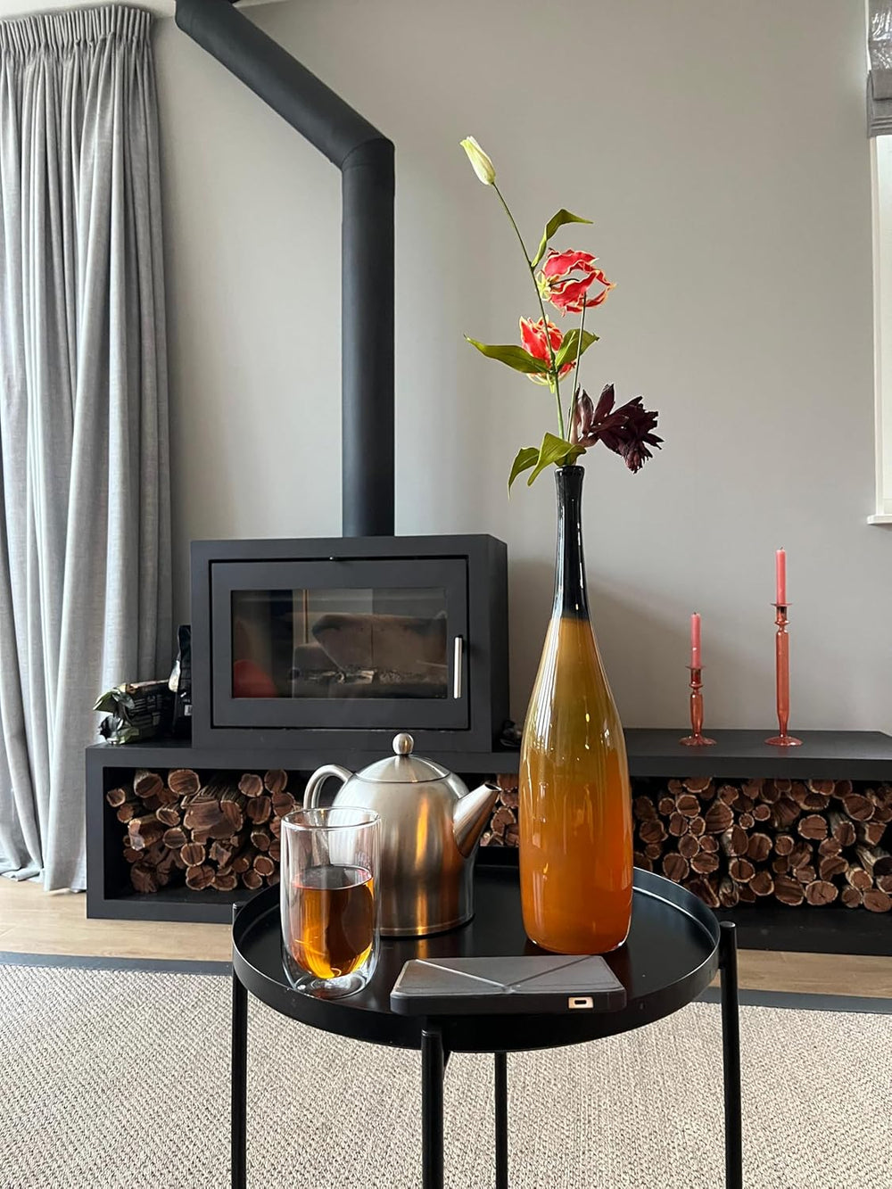 Bredemeijer Schwarze keramische Teekanne 1.2 Liter mit Teewärmer - isolierende Keramikkanne mit Edel