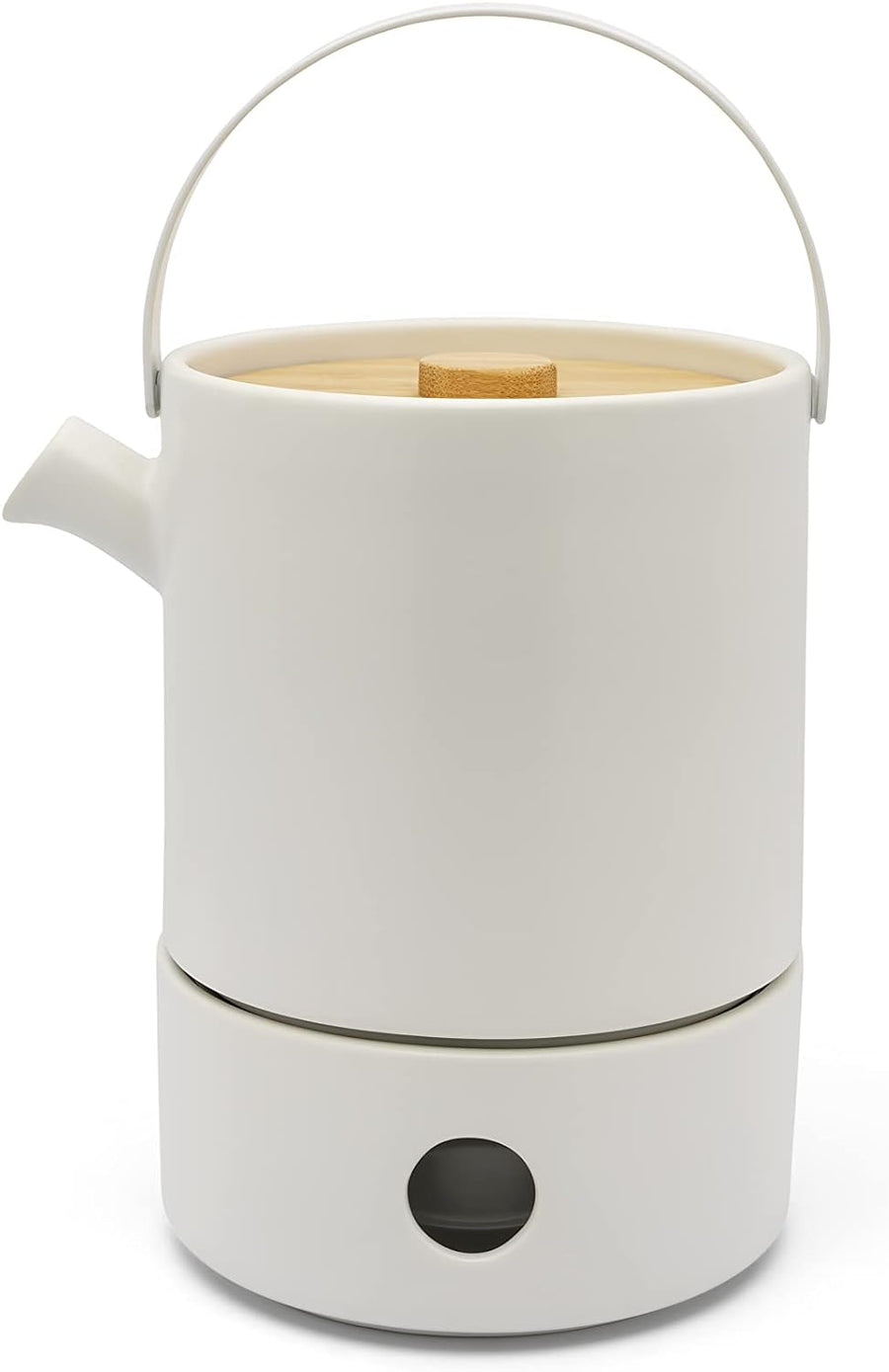 Bredemeijer weisse keramische Teekanne 1.2 Liter mit Teewärmer - isolierende Keramikkanne mit Edelst