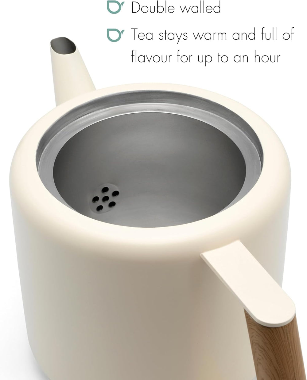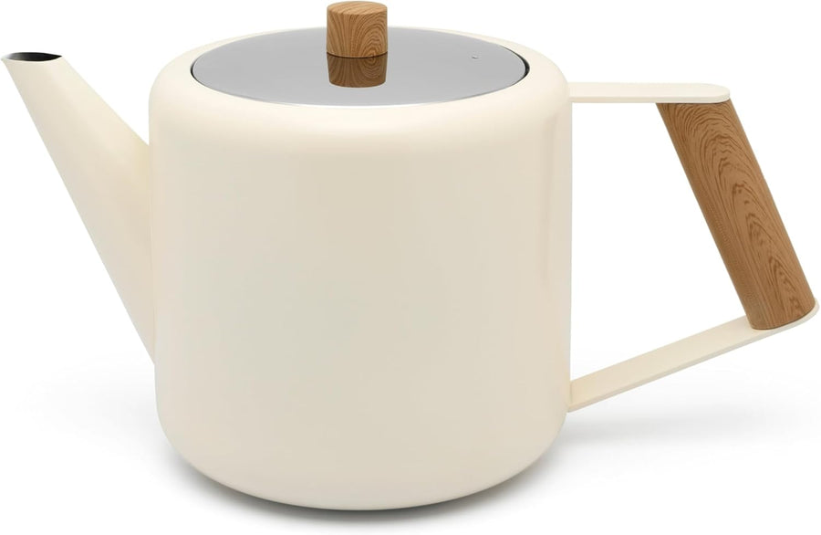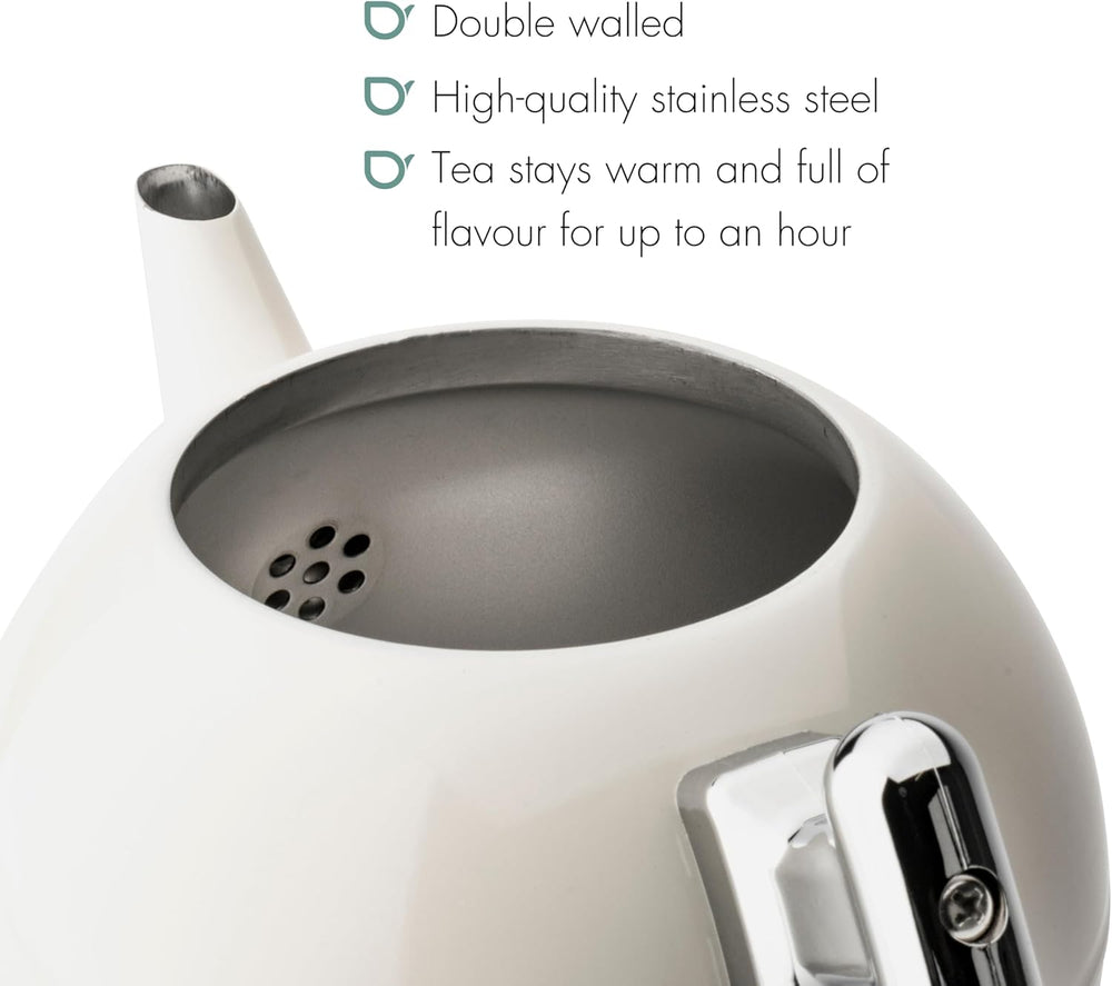 doppelwandige Creme-weisse Edelstahl Teekanne 1.1 Liter - isolierende Kanne für längeren Teegenuss 1