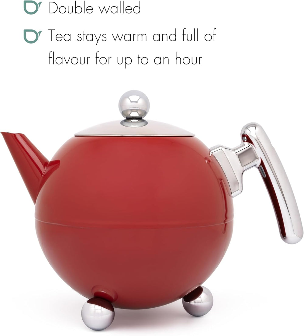 Bredemeijer rote bauchige doppelwandige Edelstahl Teekanne 1.2 Liter 160x241x181mm Rot, 160x241x181m