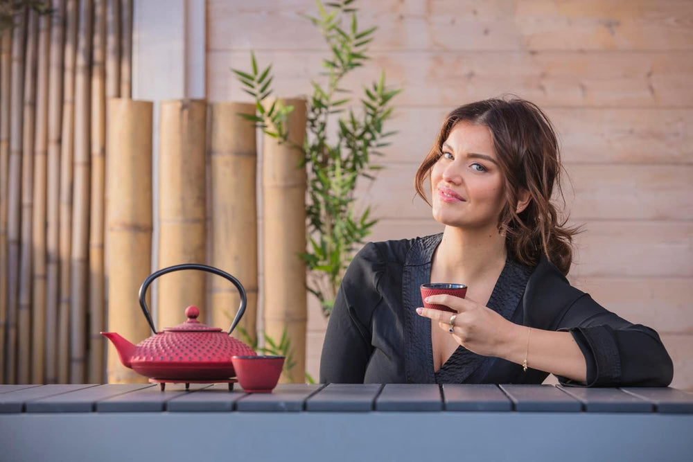 Bredemeijer rotes asiatisches gusseisernes Teekannen Set 0.6 Liter mit 2 Tassen