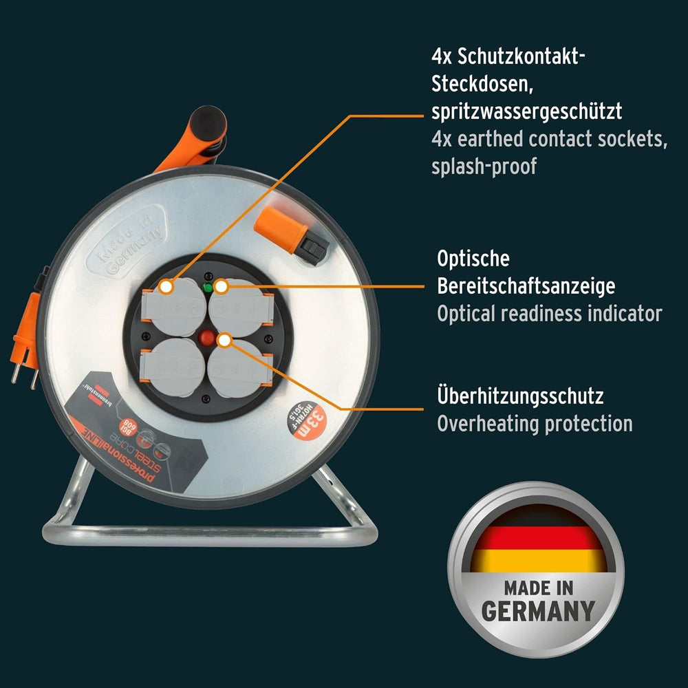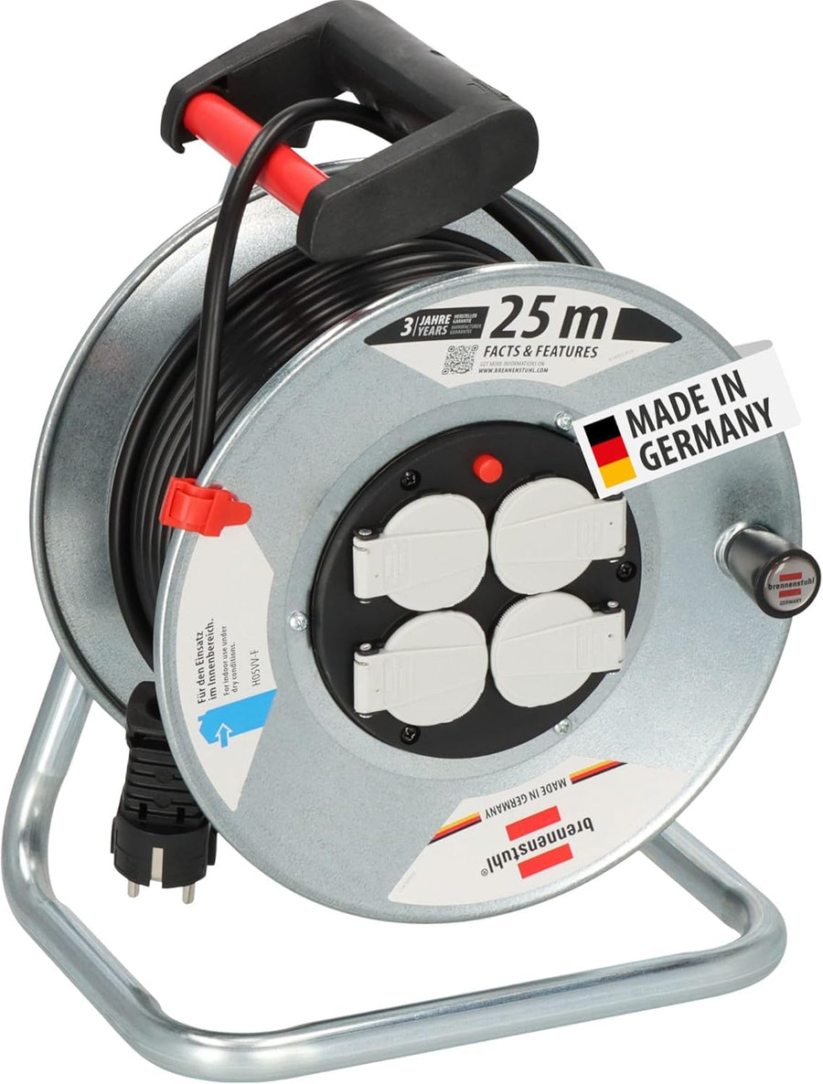 Brennenstuhl Garant S 4 E Kabeltrommel 25m (aus Stahlblech, für den Einsatz im Innenbereich, Made in