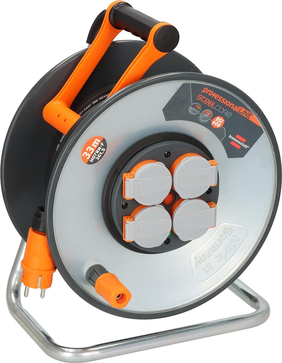 Brennenstuhl professionalLINE SteelCore Kabeltrommel SC 3100 IP44 (33m, Trommelkörper aus Stahlblech