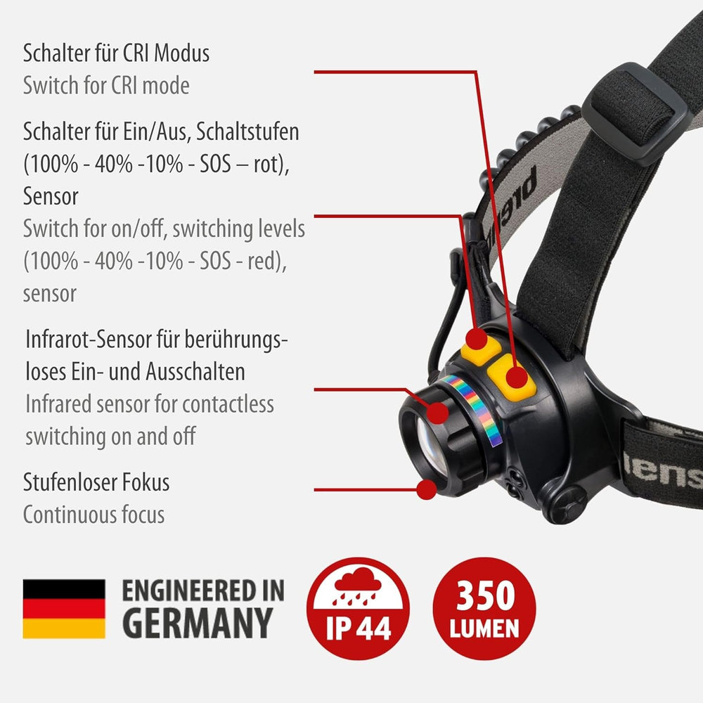 Brennenstuhl LuxPremium LED Akku CRI Kopflampe SL 350 AFT (350lm, IP44, wählbarer Lichtfarbe, LED St