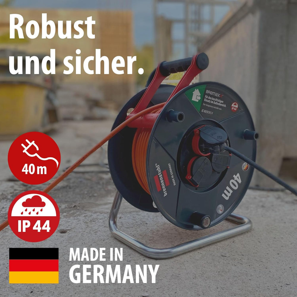 Brennenstuhl Garant V2 IP44 Kabeltrommel 40m outdoor (Made in Germany, Kabel in Signalfarbe orange,