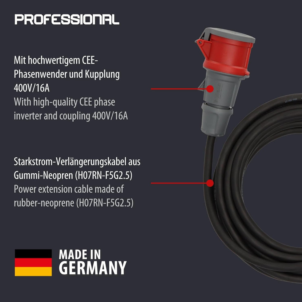 Brennenstuhl CEE Verlängerungskabel mit Phasenwender IP44 (25m Kabel, H07RN-F 5G2,5, 5-polig mit CEE
