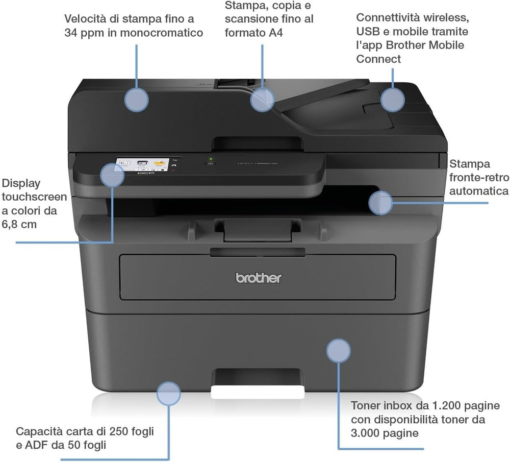 Brother DCP-L2660DW – 3-in-1-Multifunktionsgerät Laserdrucker Monochrom – WLAN & LAN– Automatischer