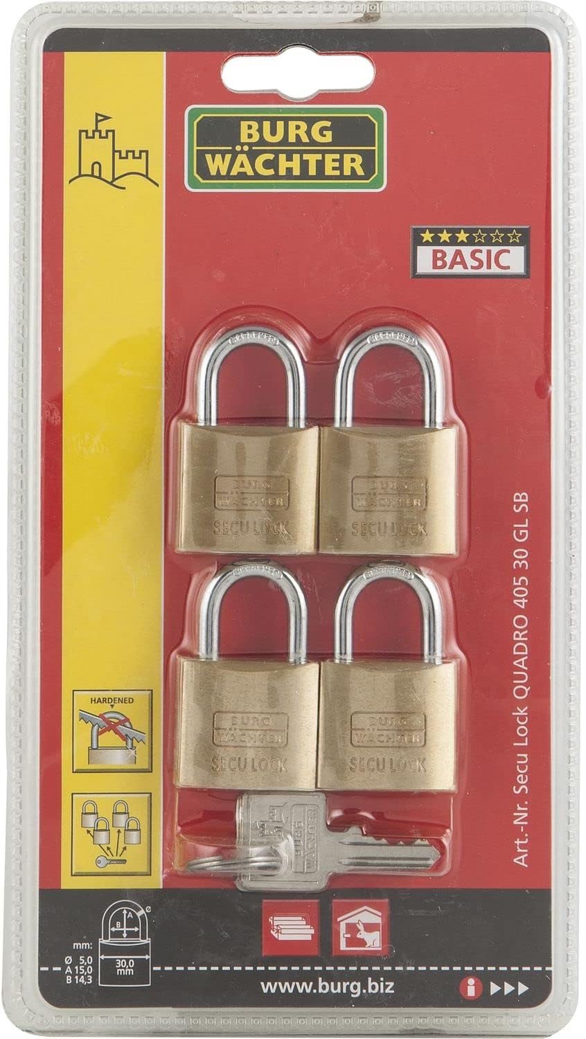 BURG WÄCHTER Vorhangschloss-Set 405 Quadro, 30 mm SB-4, 1 Stück,QUADRO 405 30 GL SB