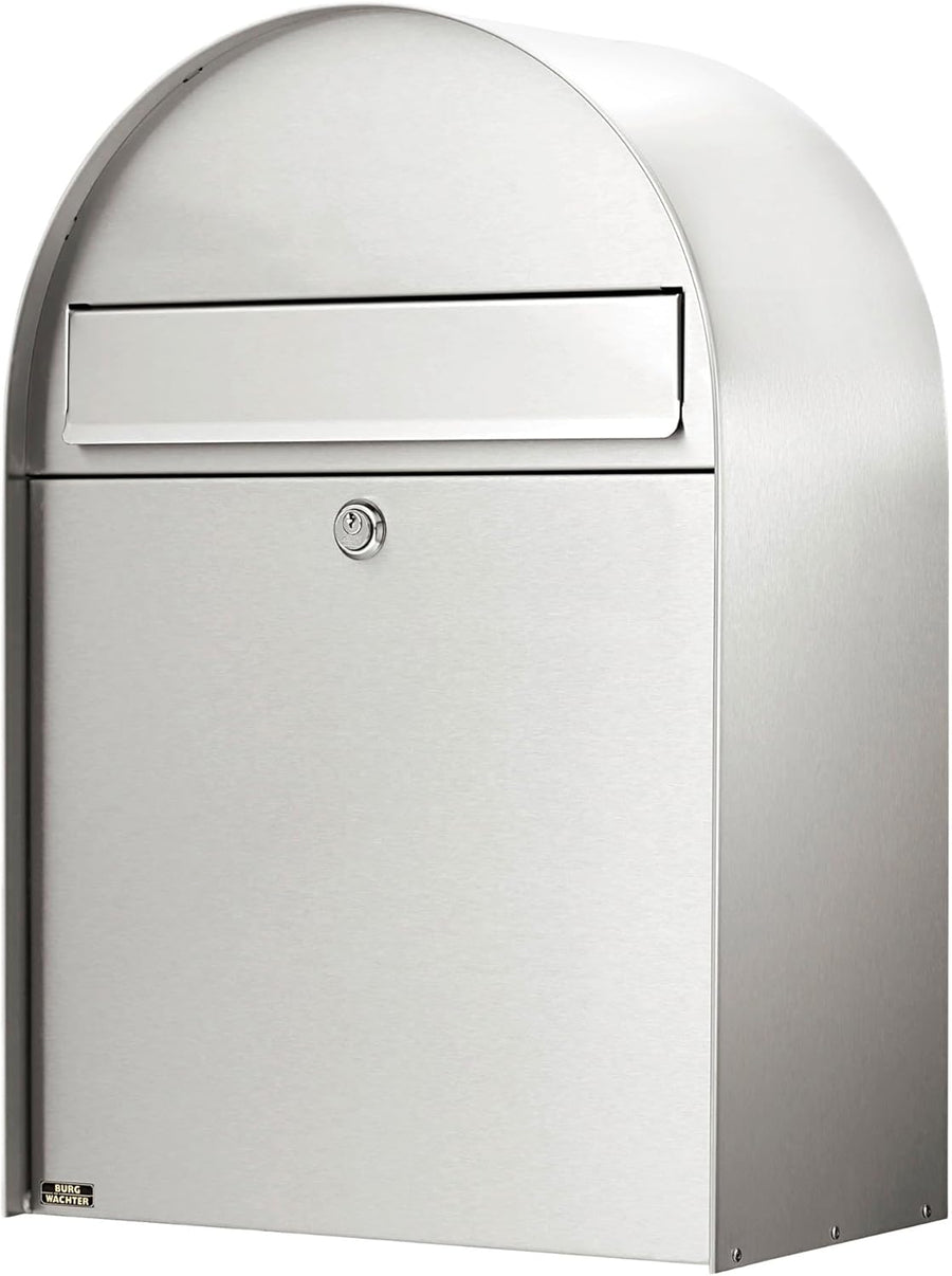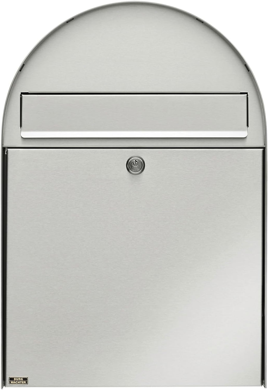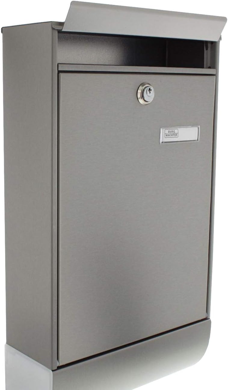 Burg-Wächter Briefkasten Edelstahl mit Öffnungsstopp, Grossraumbriefkasten, A4 Einwurf-Format, Rostf