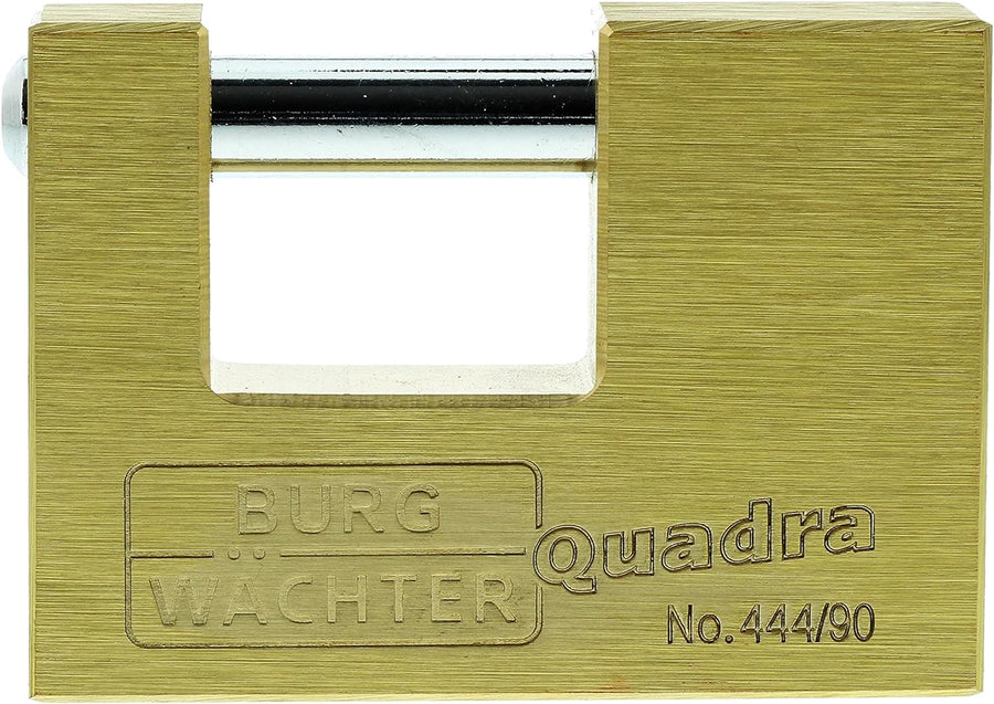Burg Wächter Vorhängeschloss, Quadro 444 90 SB, Inkl. 2 Schlüssel, Bügelstärke: 12 mm Messing