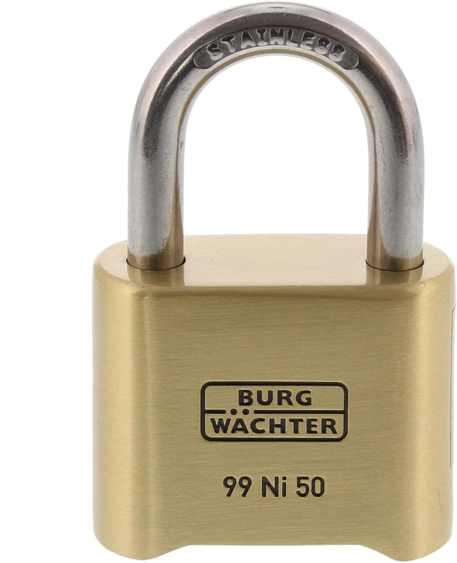 Burg Wächter Vorhängeschloss, Rostfrei, mit Zahlenschloss, 7,9 mm Bügelstärke, Massiver Messingkörpe