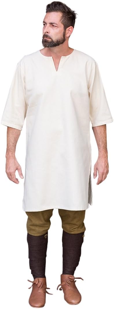 Elbenwald Mittelalter Untertunika Herren Dreiviertelarm Unterkleid Natur Baumwolle - XL, XL