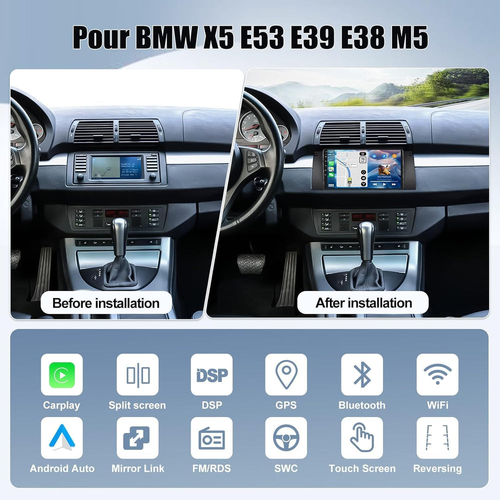 [4G+64G] CAMECHO Android 13 Autoradio f眉r BMW 5 E39 E53 M5 X5 (1996-2007) mit Carplay Android Auto N