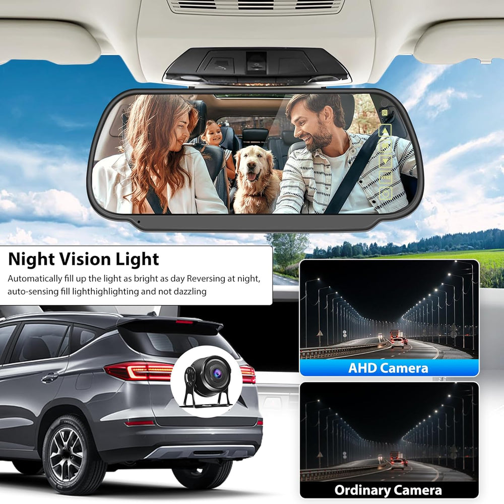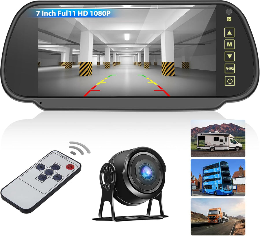 CAMECHO Rückfahrkamera Set mit 7 Zoll LCD Spiegel Dashcam,1080P Rückfahrkamera mit IP69 Wasserdicht