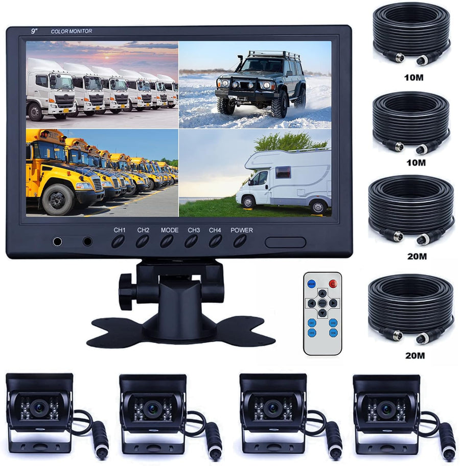 CAMECHO Rückfahrkamera 4 Kameras Set, 9 Zoll Monitor 4 Geteilte Rück und Vorder Kamera, Weitwinkel,