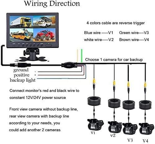 CAMECHO Fahrzeug Backup Kamera – 22,9 cm 4 Geteilte Monitor Vorderseite View, Kamera 18 IR-Nachtsich