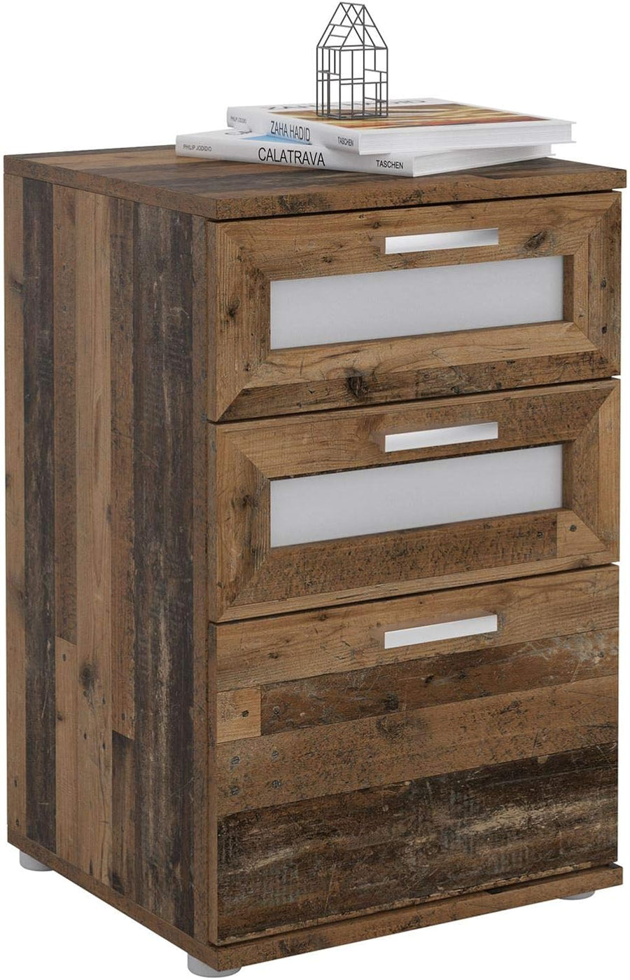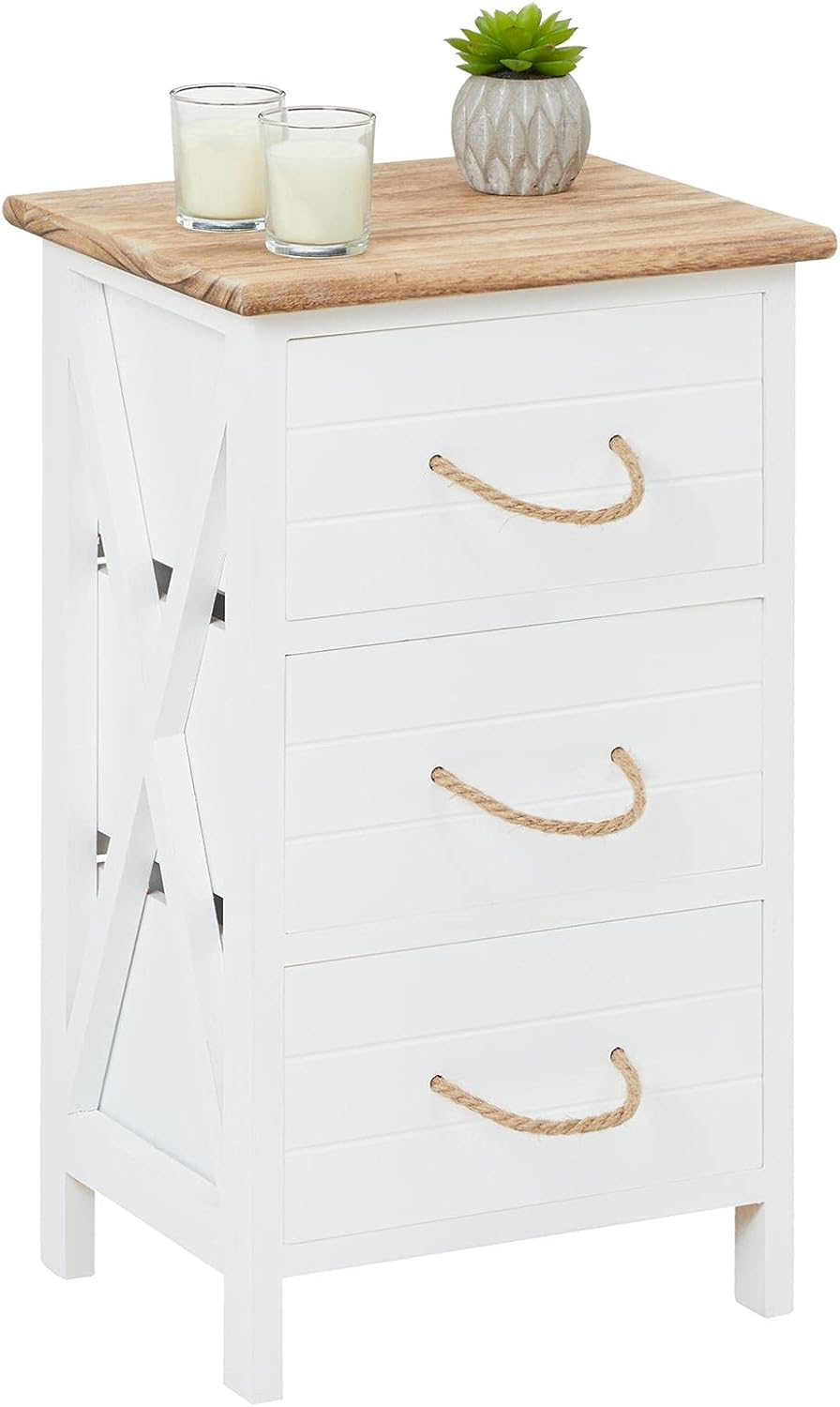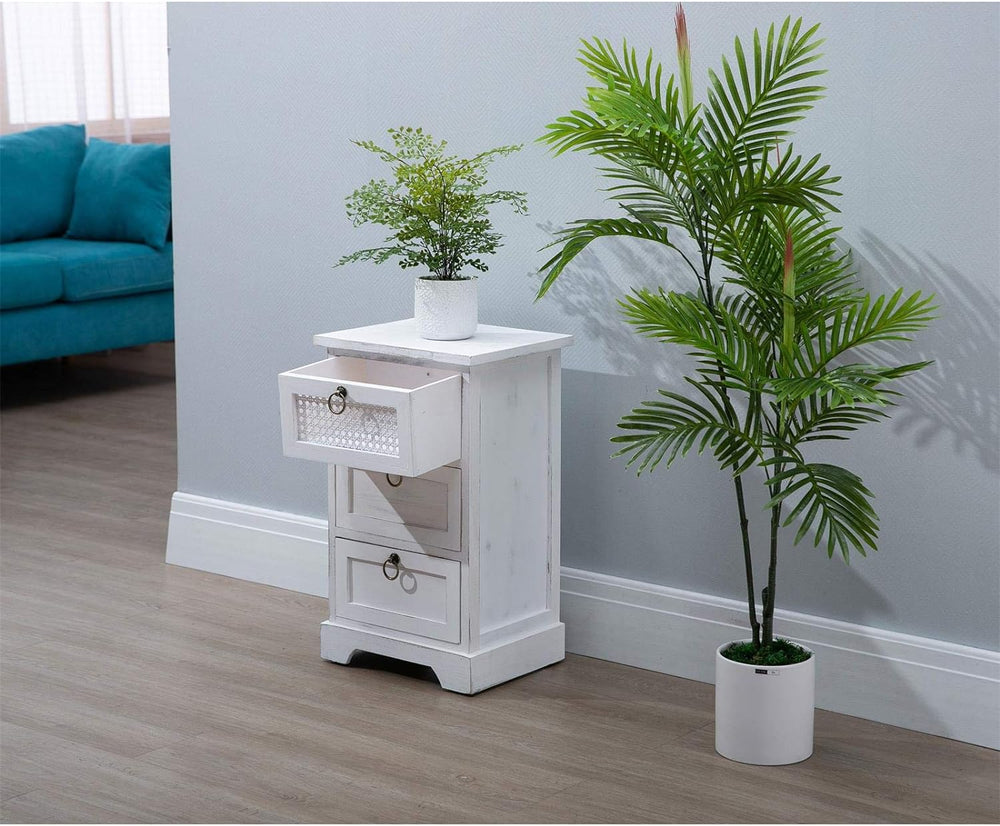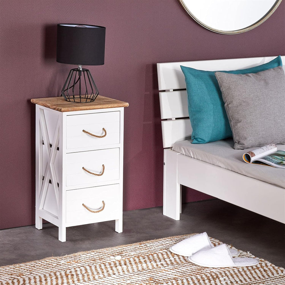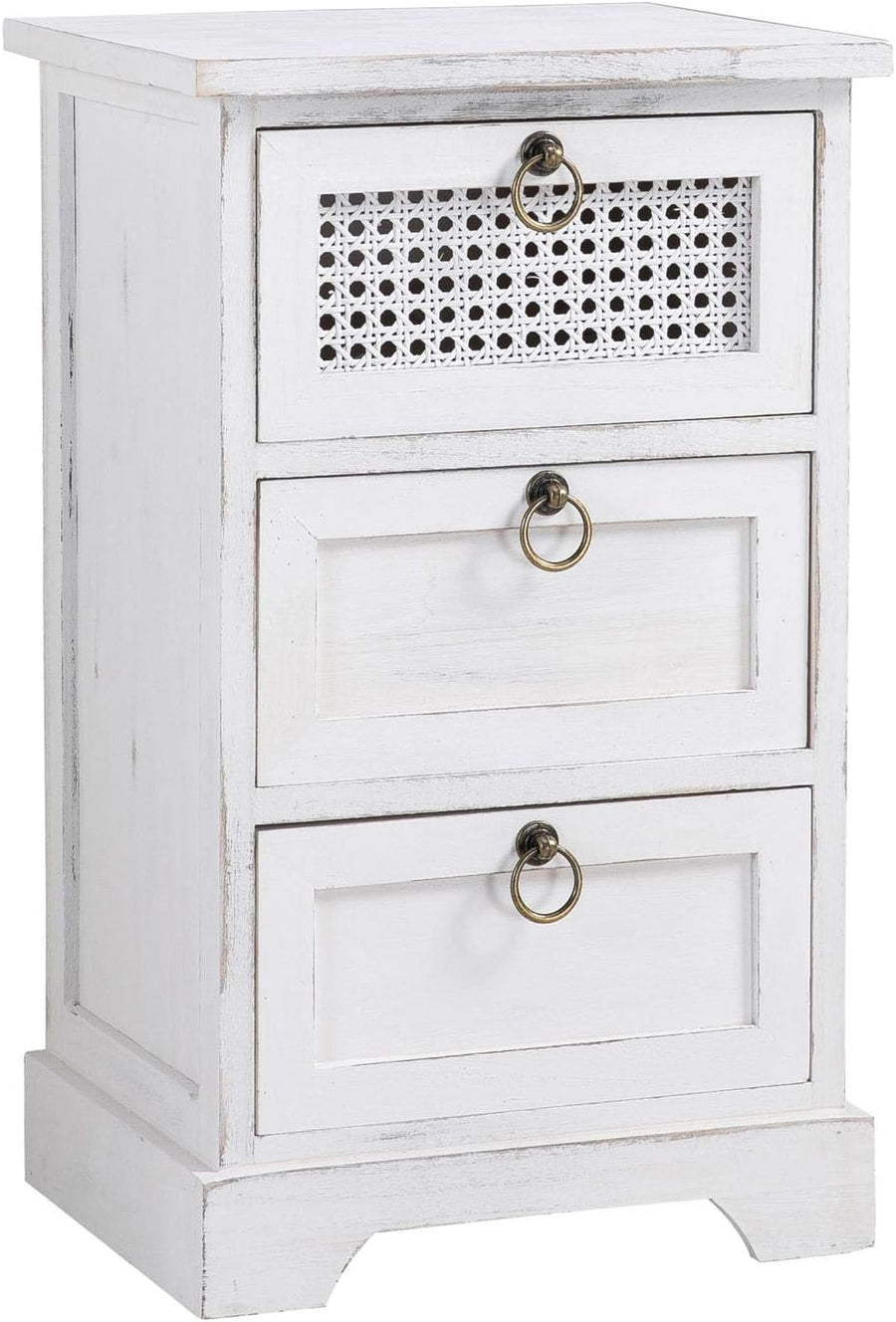 CARO-Möbel Nachttisch IRMA Nachtschrank für Boxspringbett Nachtkonsole mit 3 Schubladen weiss Vintag
