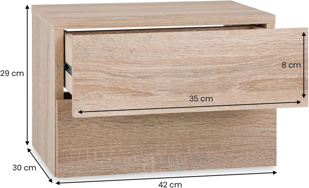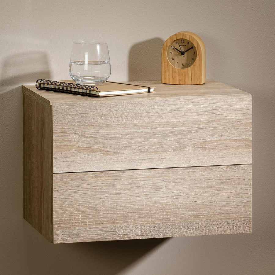 CARO-Möbel Nachtkommode ANNI Nachttisch Nachtschrank hängend Wandregal mit 2 Schubladen in Sonoma Ei