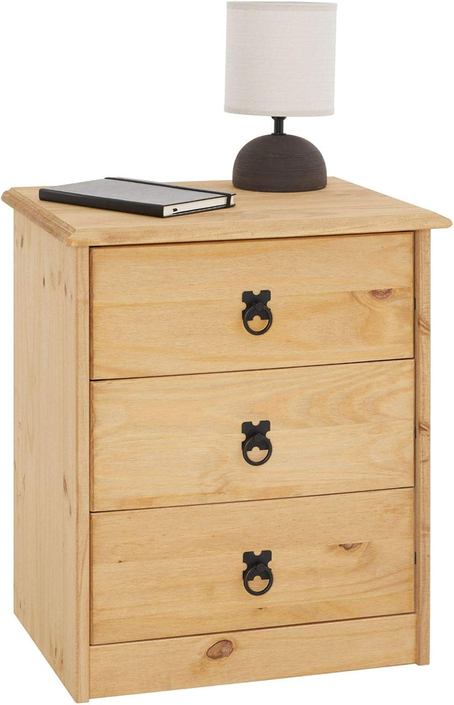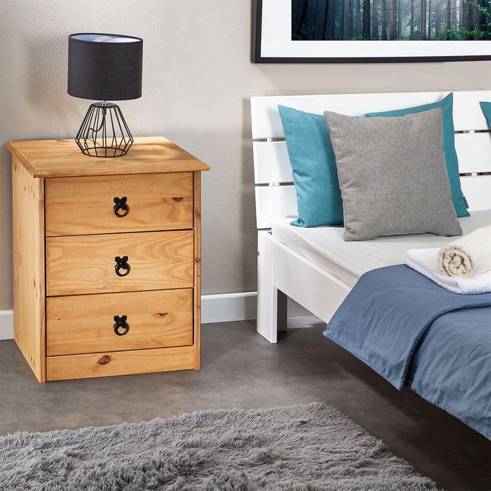 CARO-Möbel Nachttisch Barrio mit 3 Schubladen, Nachtkommode für Boxspringbetten, Kiefer Massivholz,