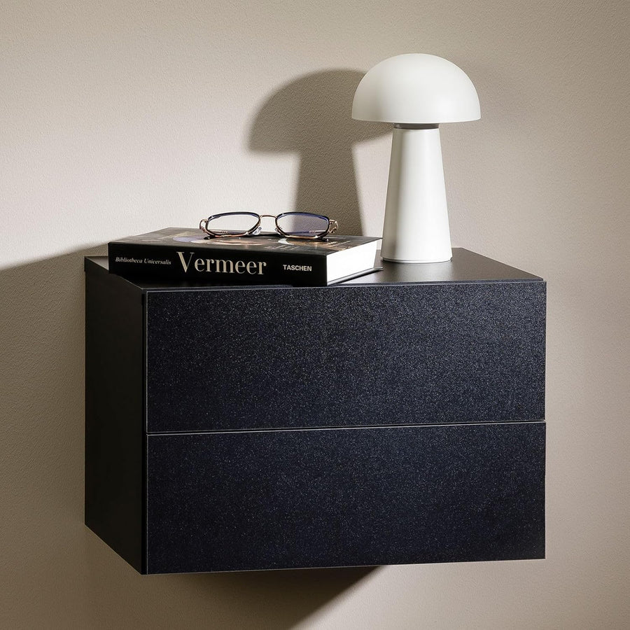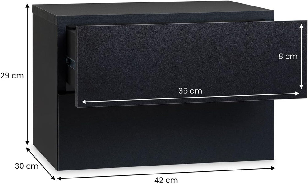 CARO-Möbel Nachtkommode ANNI Nachttisch Nachtschrank hängend Wandregal mit 2 Schubladen in schwarz,