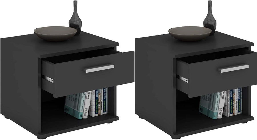 CARO-Möbel Nachttisch Mary im 2er Set Nachtschrank Nachtkommode in schwarz mit Schublade und offenem