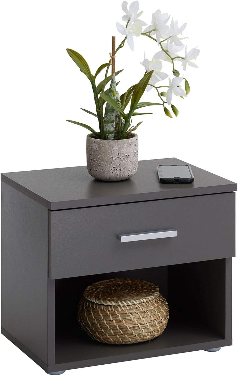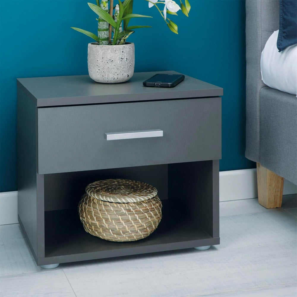 CARO-Möbel Nachttisch Nachtschrank Nachtkommode Mary anthrazit grau, 42 x 38 x 30 cm, mit Schublade