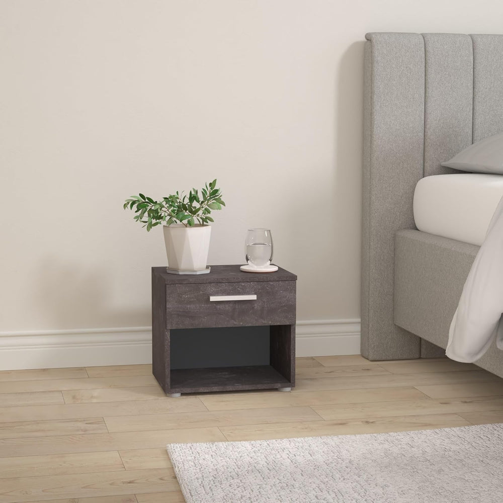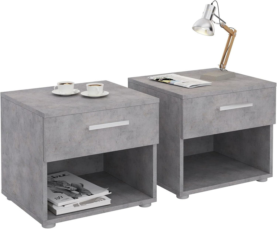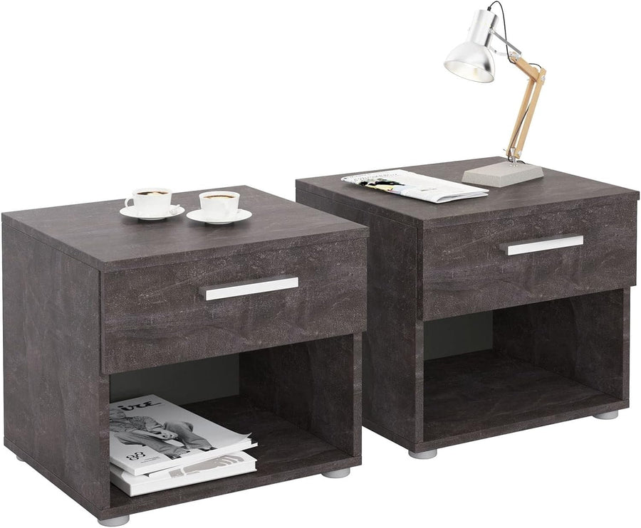 CARO-Möbel Nachttisch Mary im 2er Set Nachtschrank Nachtkommode in Beton dunkel mit Schublade und of