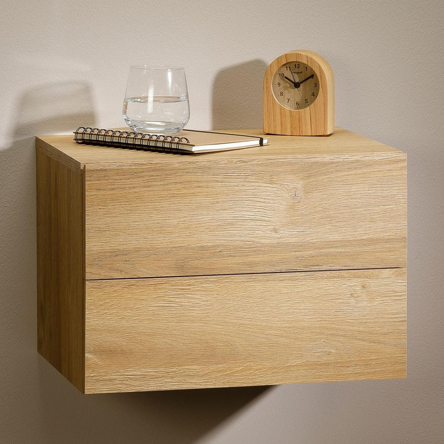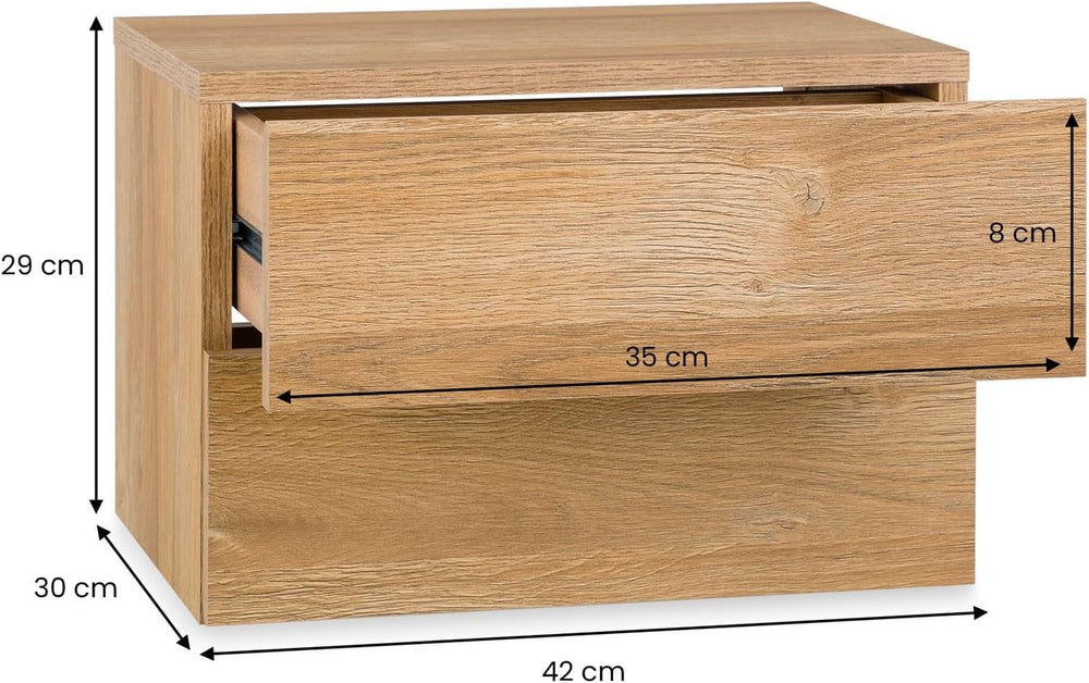CARO-Möbel Nachtkommode ANNI Nachttisch Nachtschrank hängend Wandregal mit 2 Schubladen in Wildeiche