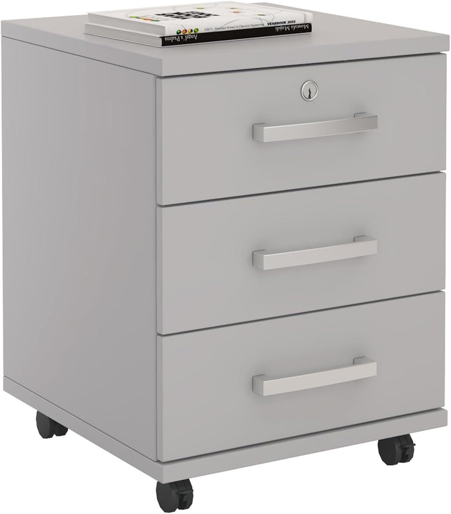 CARO-Möbel Rollcontainer Bürocontainer Büroschrank Vancouver, in lichtgrau, abschliessbar mit 3 Schu