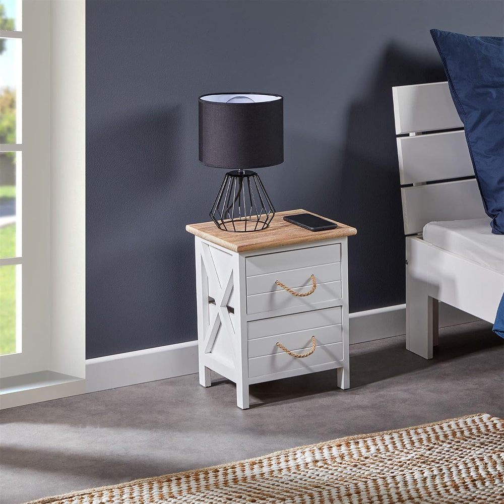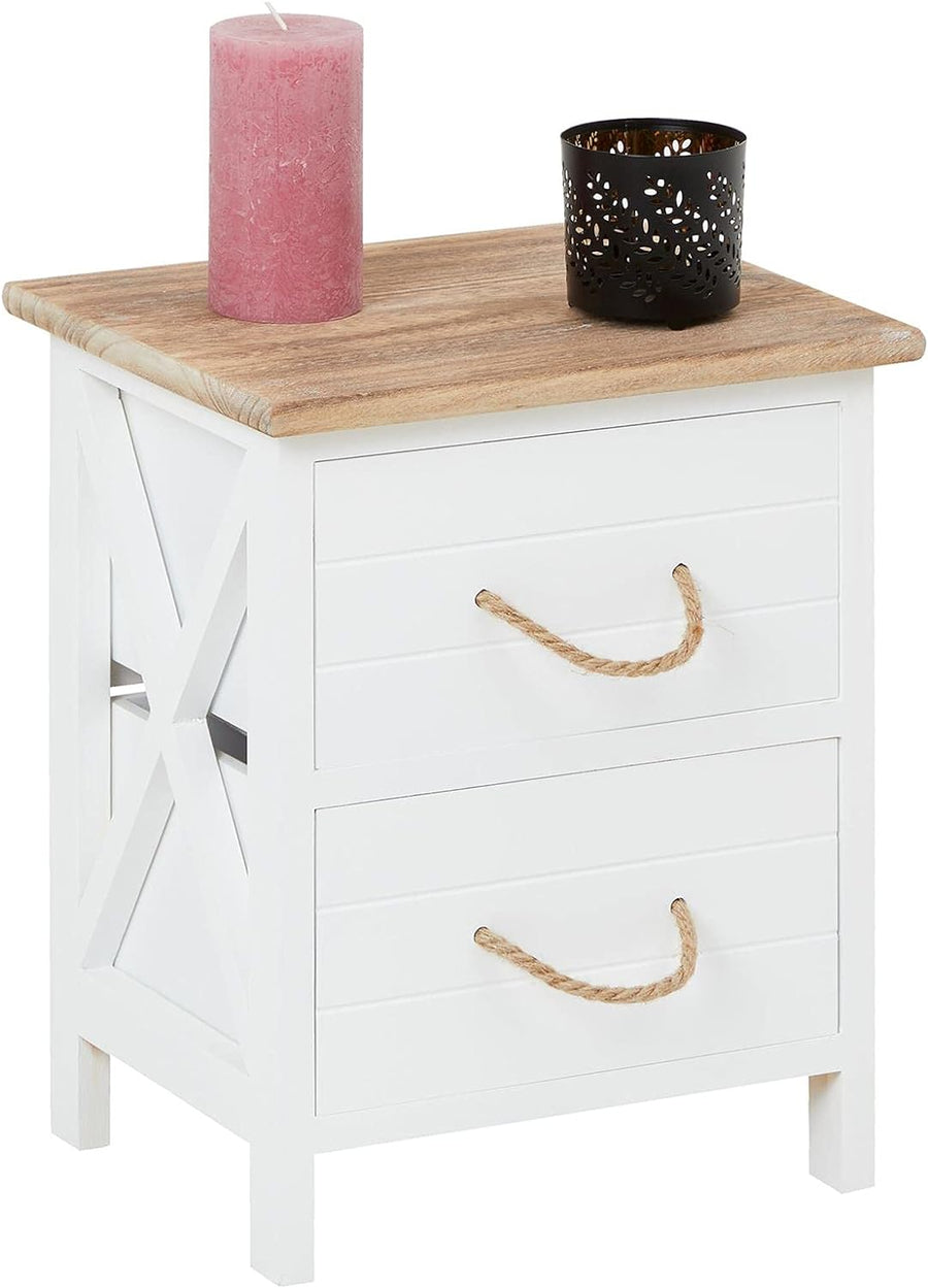 CARO-Möbel Nachttisch IRMA Nachtschrank Nachtkonsole mit 2 Schubladen weiss Shabby Chic Vintage Desi