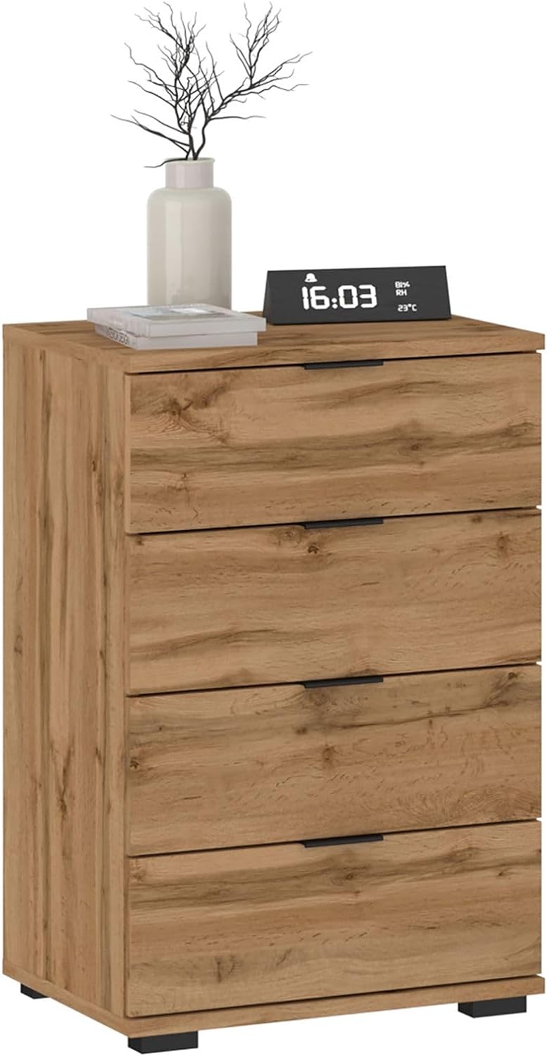 CARO-Möbel Nachttisch Piano Wotan Eiche, Nachtkommode für Boxspringbetten, Nachtschrank mit 4 Schubl