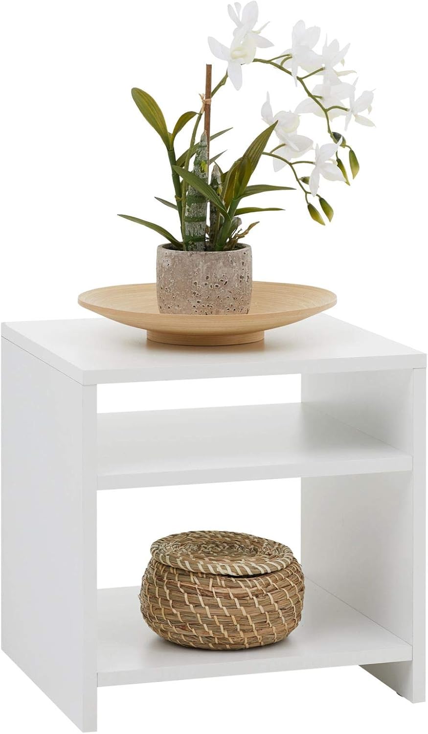 CARO-Möbel Nachttisch Nachtschrank Beistelltisch ALMERIA in weiss, mit 2 offenen Fächern, Weiss