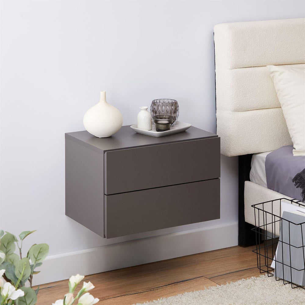 CARO-Möbel Nachtkommode ANNI Nachttisch Nachtschrank hängend Wandregal mit 2 Schubladen in grau anth