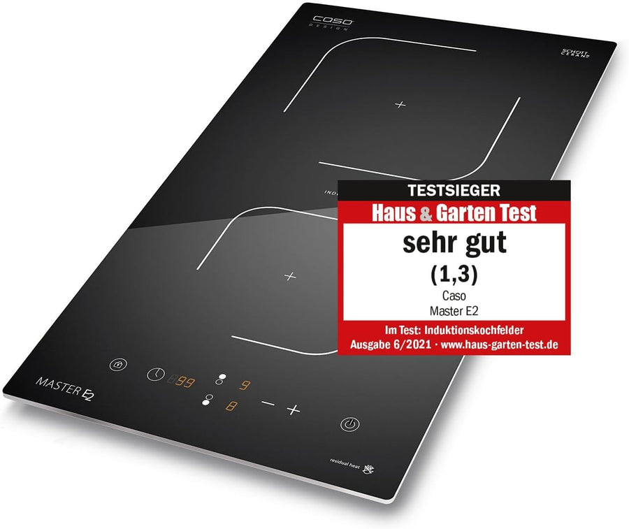 CASO Master E2 Induktionskochfeld, Einbaukochfeld mit 2 Kochzonen, max. 2000-3500 Watt, Booster, Tim
