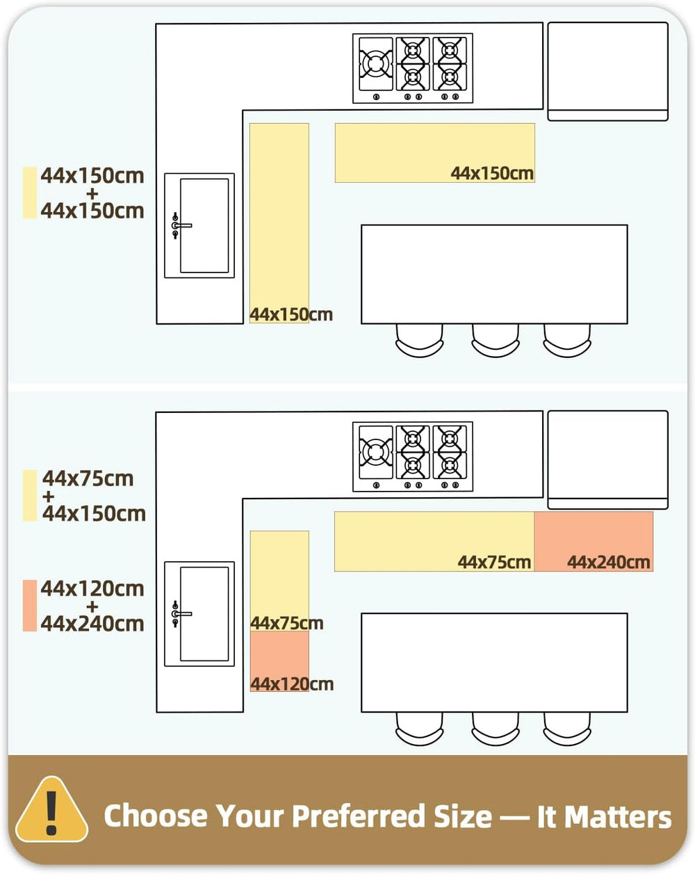 Color G Küchenläufer 44 x 120 + 44 x 240 cm, Anti-Müdigkeit Küchenteppich Waschbar rutschfest, Leder