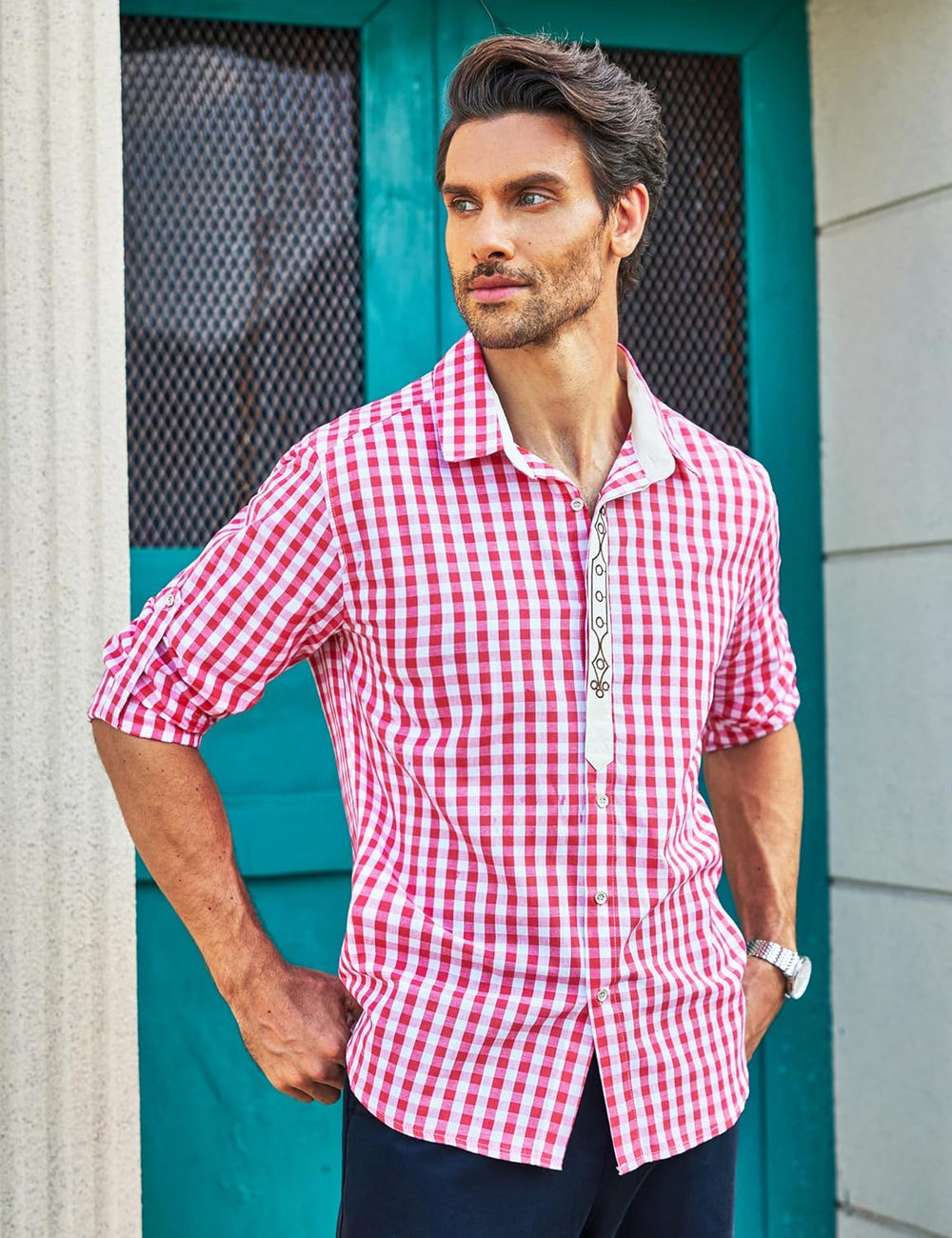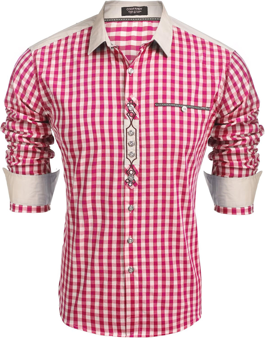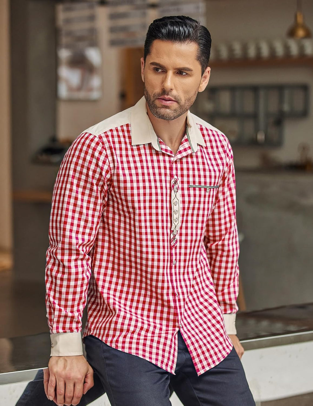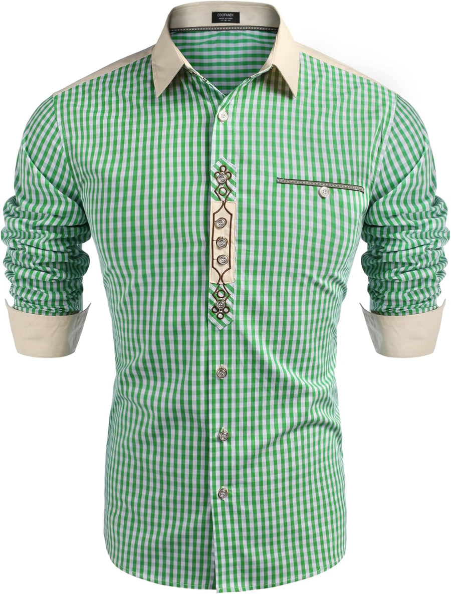 COOFANDY Hemd Herren Langarm Trachtenhemd Kariertes Oktoberfest Hemd Freizeithemd Karohemden Herrenh