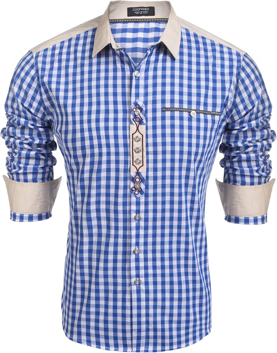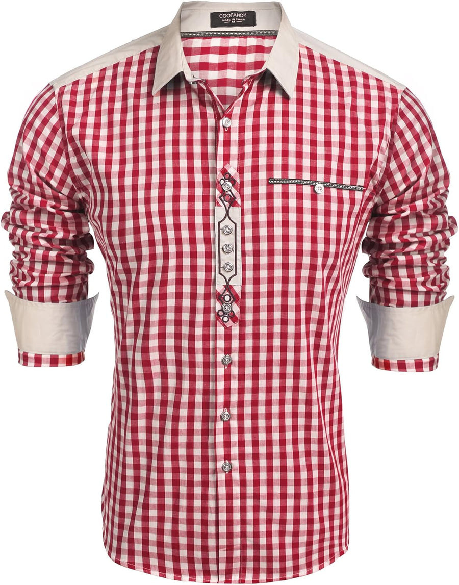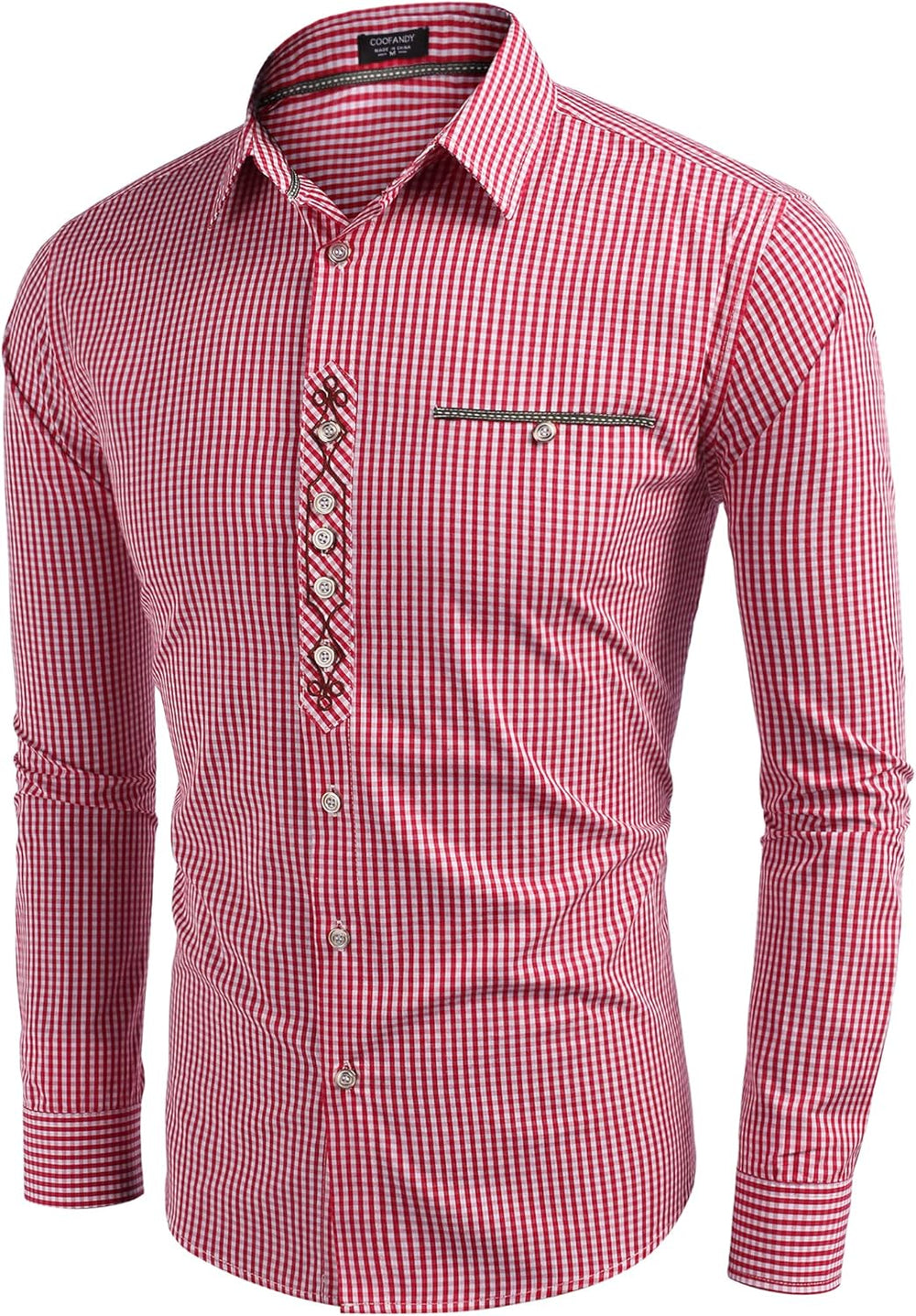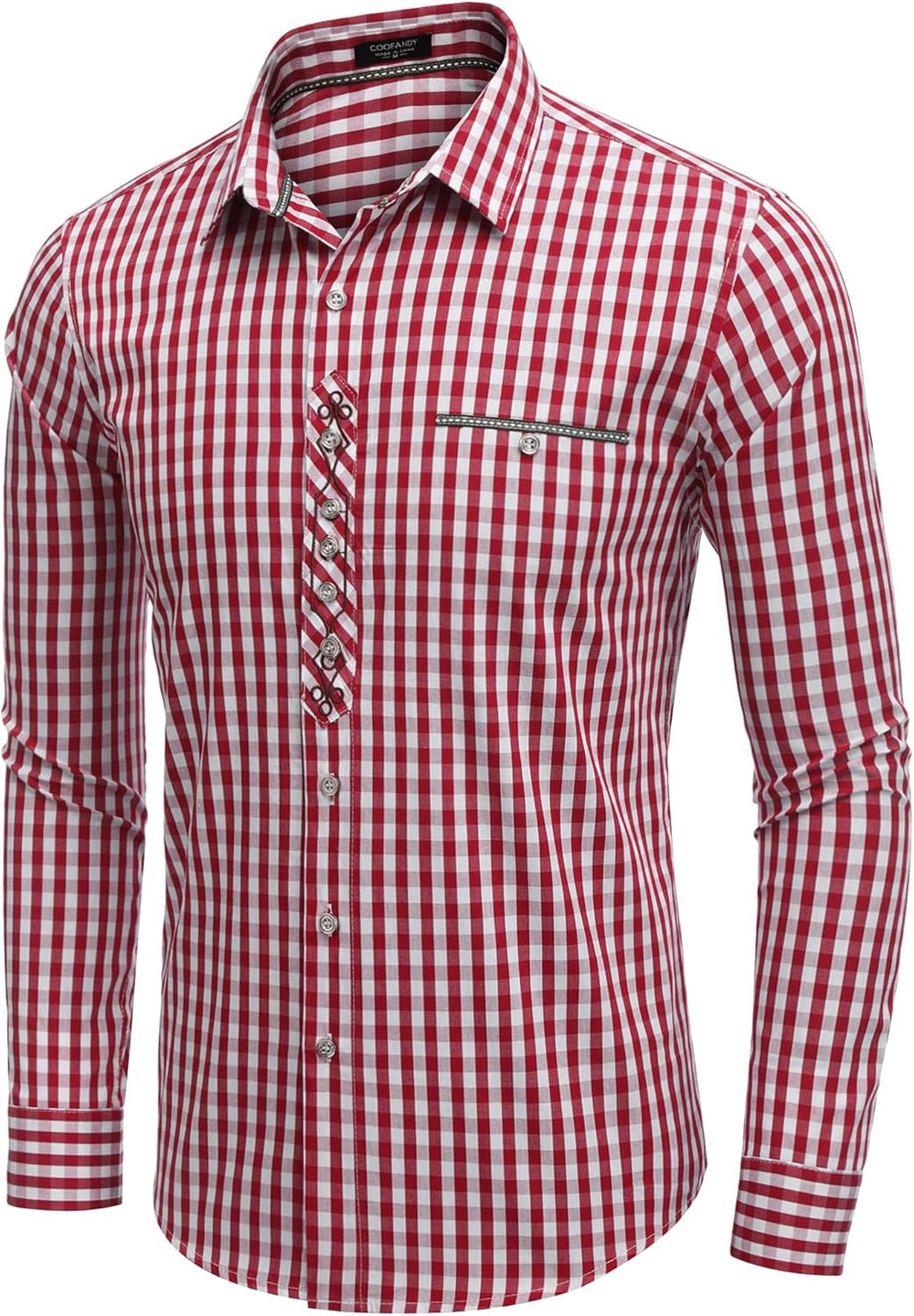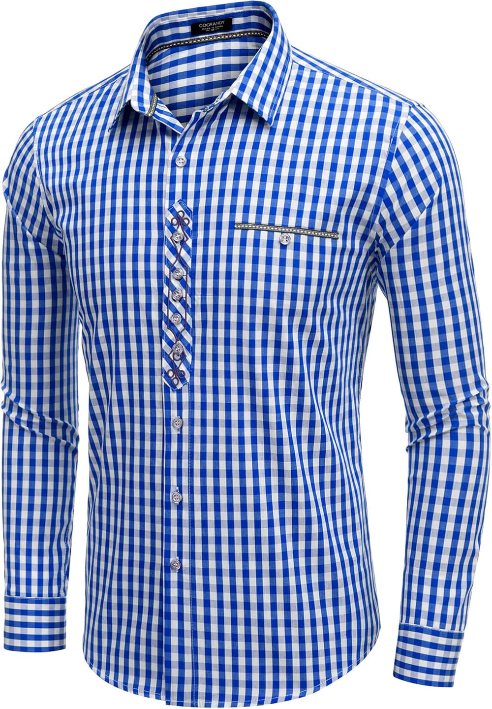 COOFANDY Hemd Herren Langarm Trachtenhemd Oktoberfest Kariertes Hemd Freizeithemd Karohemden Herrenh