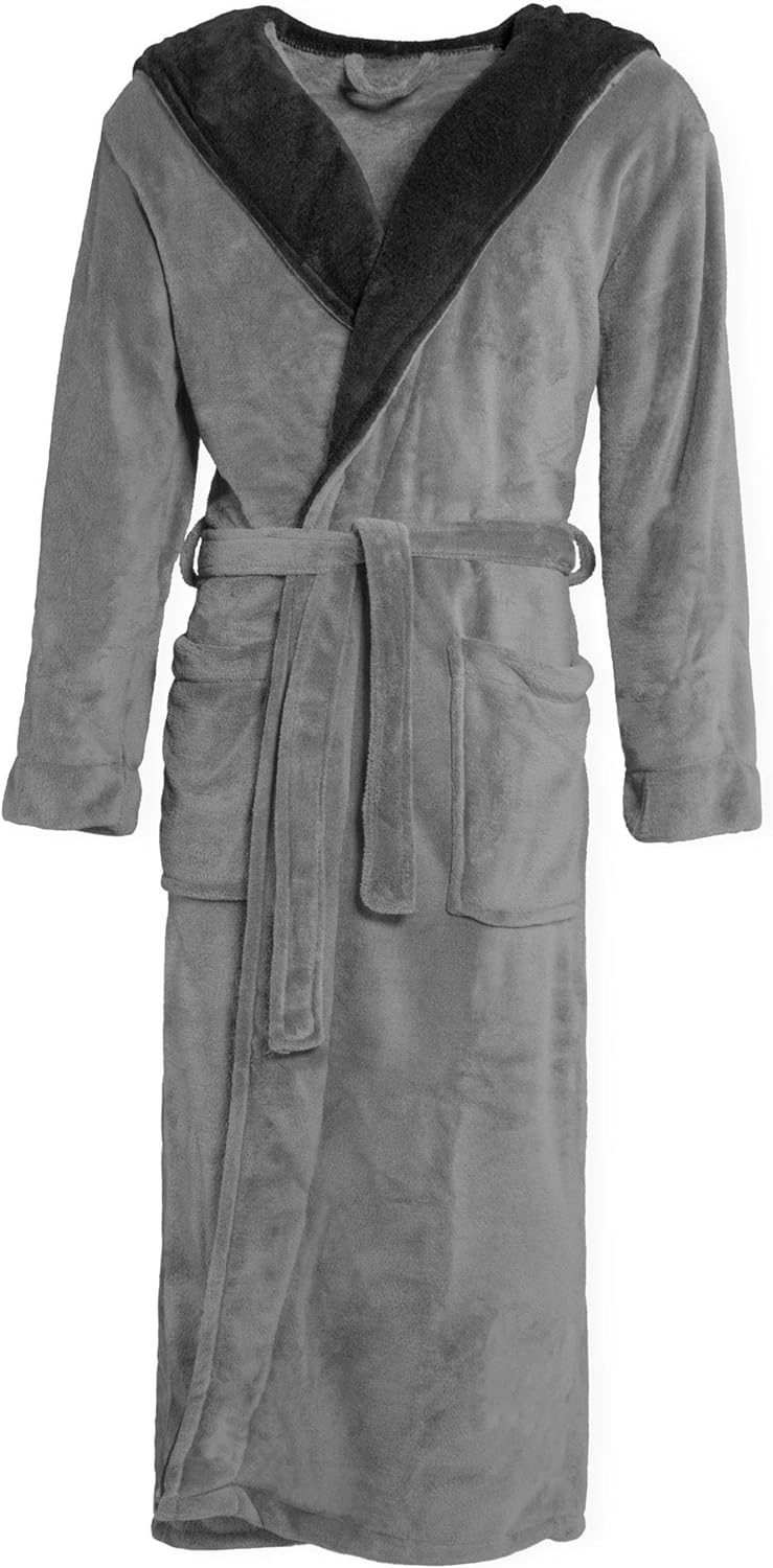 CelinaTex Texas Bademantel Kapuze L schwarz anthrazit Mikrofaser Damen Herren Morgenmantel Coral Fle