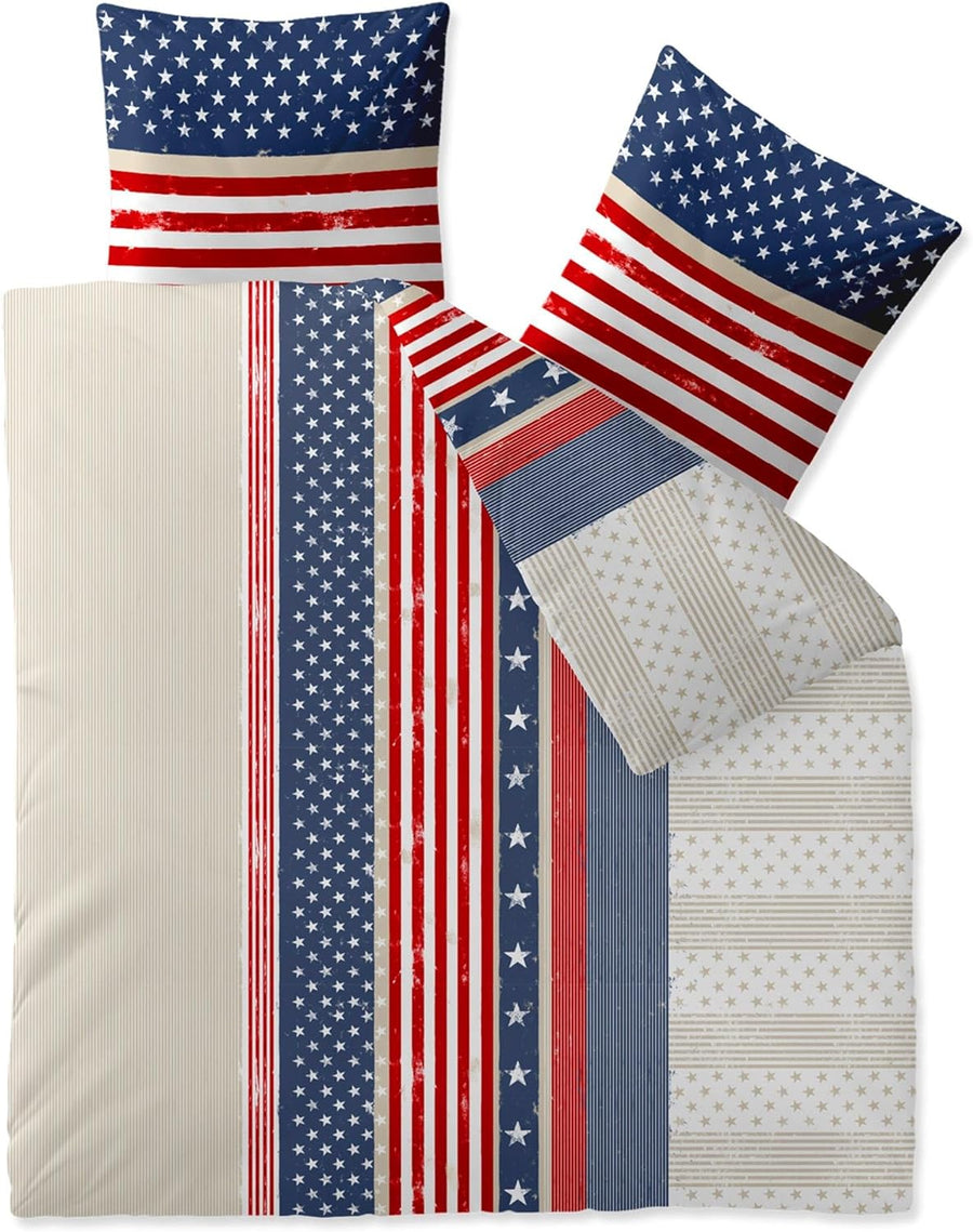 CelinaTex Style Bettwäsche 200 x 220 cm 3teilig Mikrofaser Fleece Bettbezug America Streifen Sterne