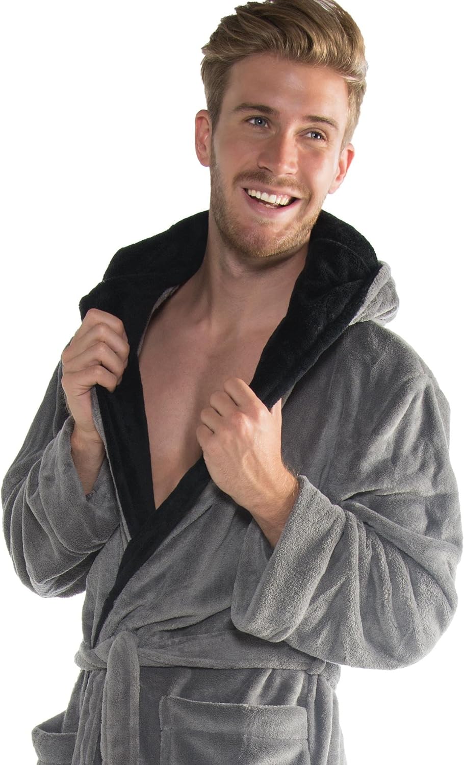 CelinaTex Texas Bademantel Kapuze L grau creme weiss Mikrofaser Damen Herren Morgenmantel Coral Flee