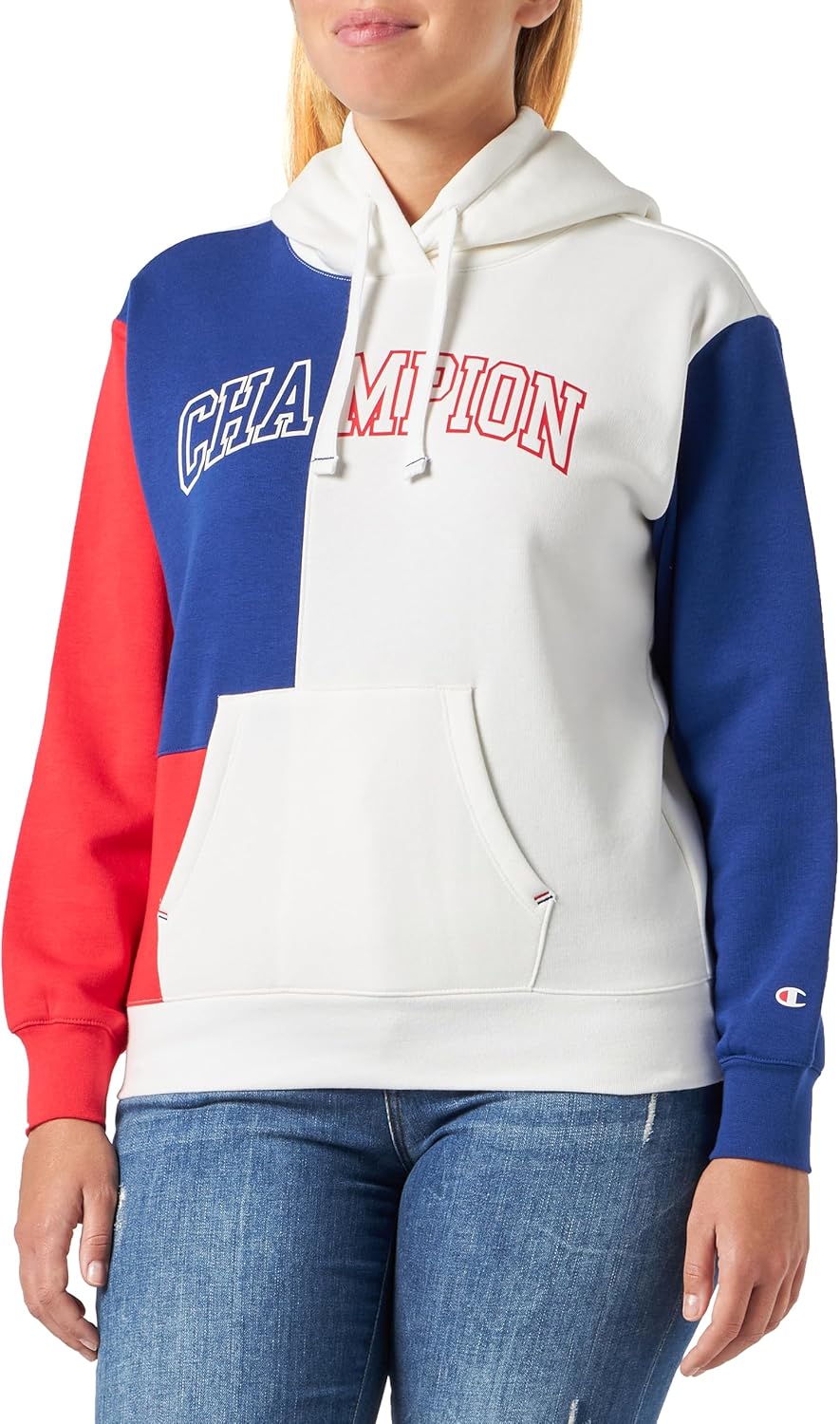 Champion Damen Legacy Color Punch W-Light Powerblend Colorblock Fleece Kapuzenpullover M Off White/B